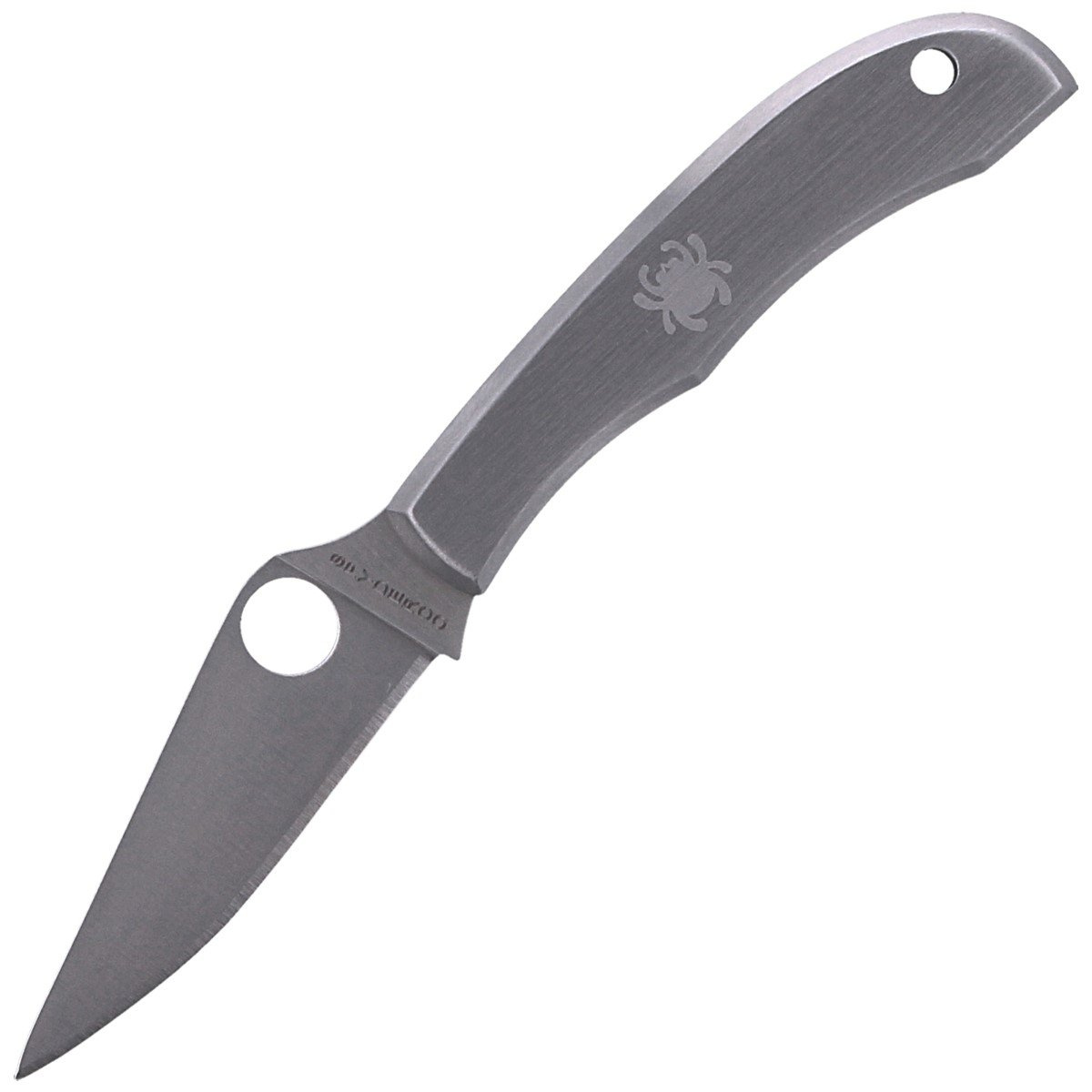 Blade - Clip Point profile, 1.9mm thick, made of 3Cr13 stainless steel that holds sharpness well. Plain blade with Full Flat Grind. Satin Finish (semi-matte) coating eliminates glare. Round SpyderHole (Spyderco patent) makes opening the knife easier.