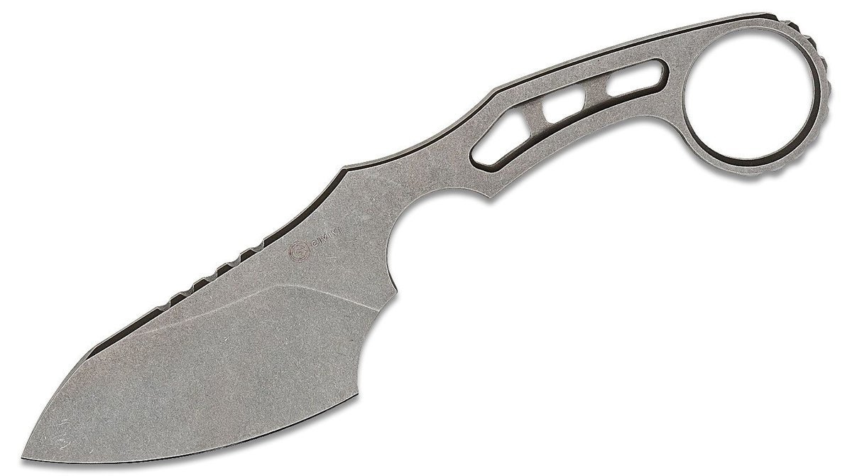Planck Grey Stonewashed small knife with a fixed drop point head made of D2 steel. It was designed by Polish creator and designer of knives, Maciej Torbé. Small thickness of the blade in combination with high, flat grind gives us cutting properties almost on the level of a razor while maintaining good durability. On the back of the blade there is a comfortable, notched thumb ramp.