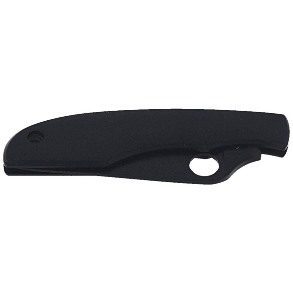 Handle - covered with stainless steel facings. Lanyard hole in back of handle for attaching safety cable or ball chain to hang knife around neck or to attach to key-ring / o-ring / key ring.