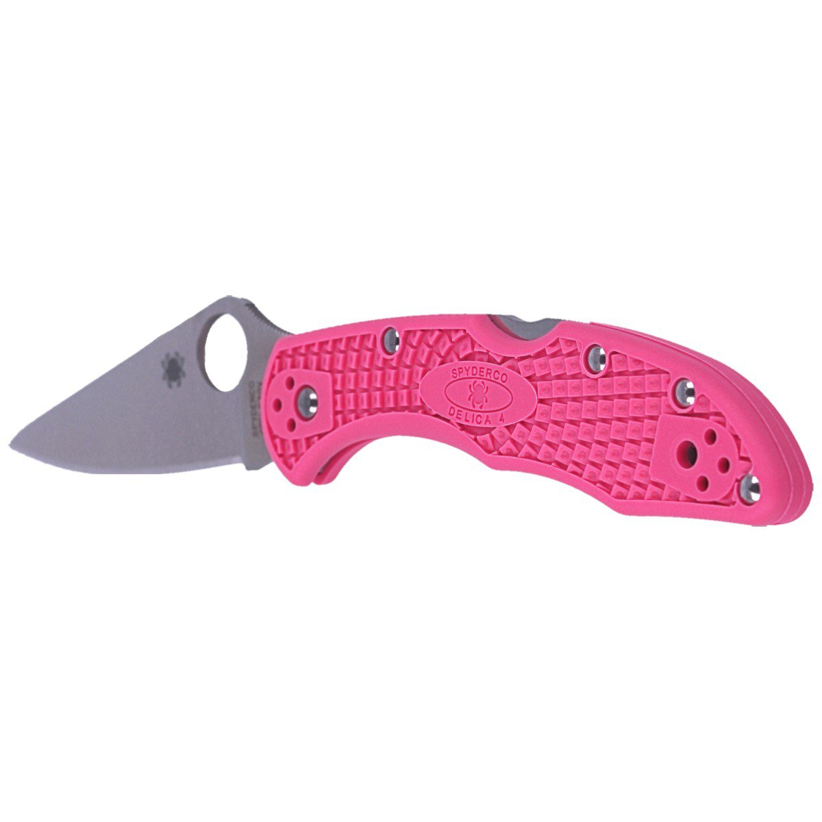 - Delica 5 FRN Pink Plain fifth edition of the iconic knife combines a CPM S30V steel threaded blade with berry applications with handles. Spyderco supports the Leczy foundation, providing them with a part of the sale of knives with pink inserts