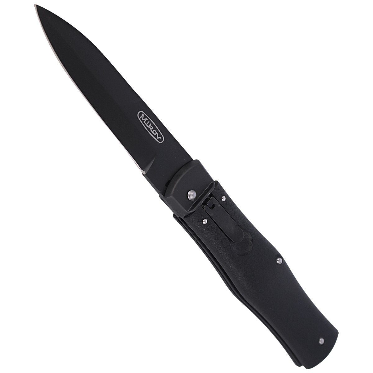 - Predator Blackout Black ABS, DLC, Mikov automatic spring knife with black DLC blade made of N690 steel. Solid construction, two strong opening springs, characteristic click when opening distinguish Predator from other spring knives. Leather case