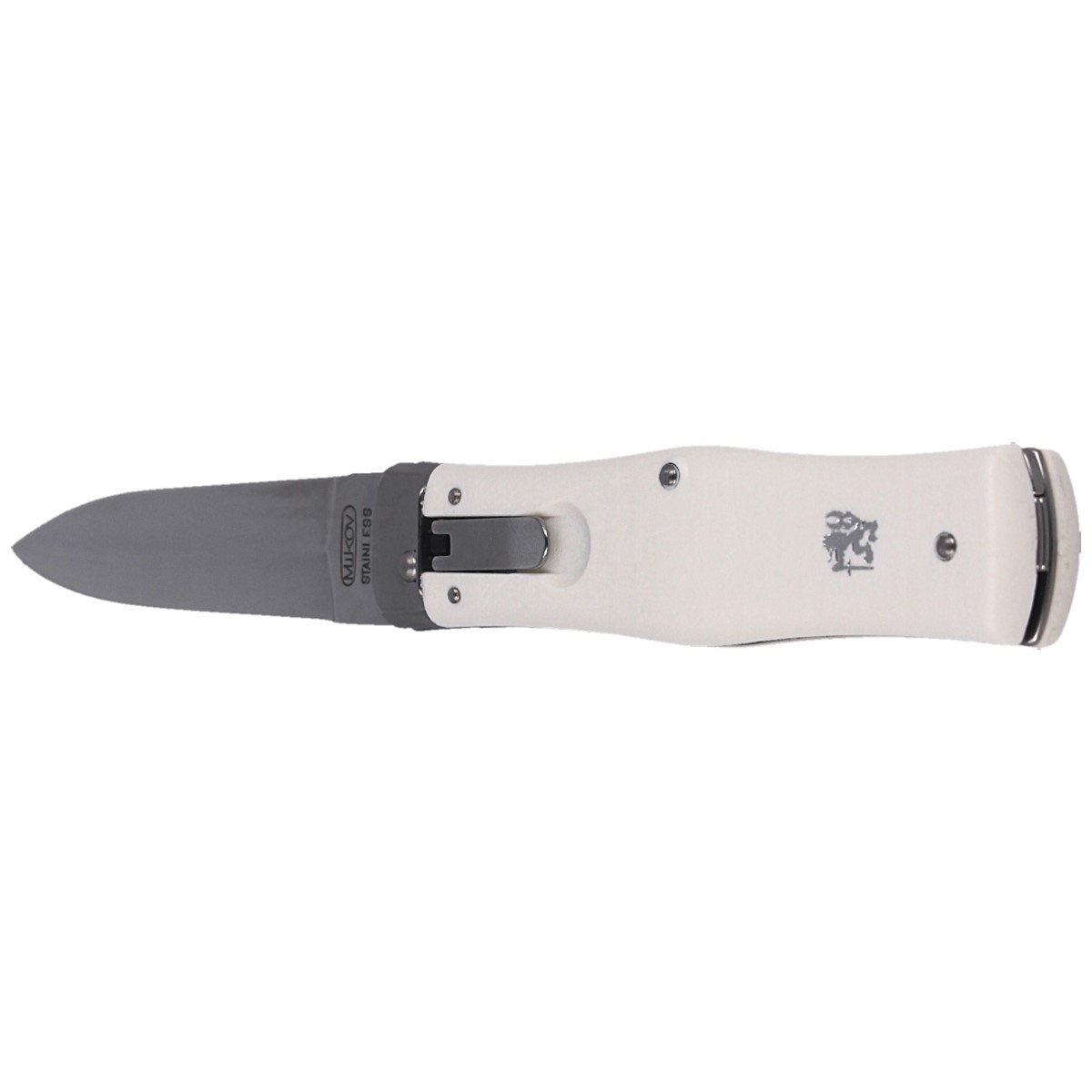 Predator ABS White, Clip automatic knife type swichblade by the Czech company Mikov from Mikulasovice with clip and ABS linings in fashionable white colour. This region has specialised in the production of knife products since 1794, being called the "Czech Solingen".