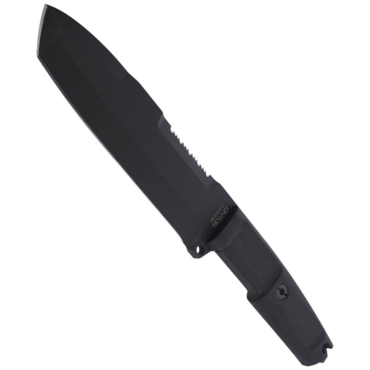 • Ontos Black No Kit suggestions from professionals prompted ER to make a strong and heavy compact field knife that performs well in all conditions. The serrated back of the blade serves as a back-up to avoid getting caught without sharp edge ready for use