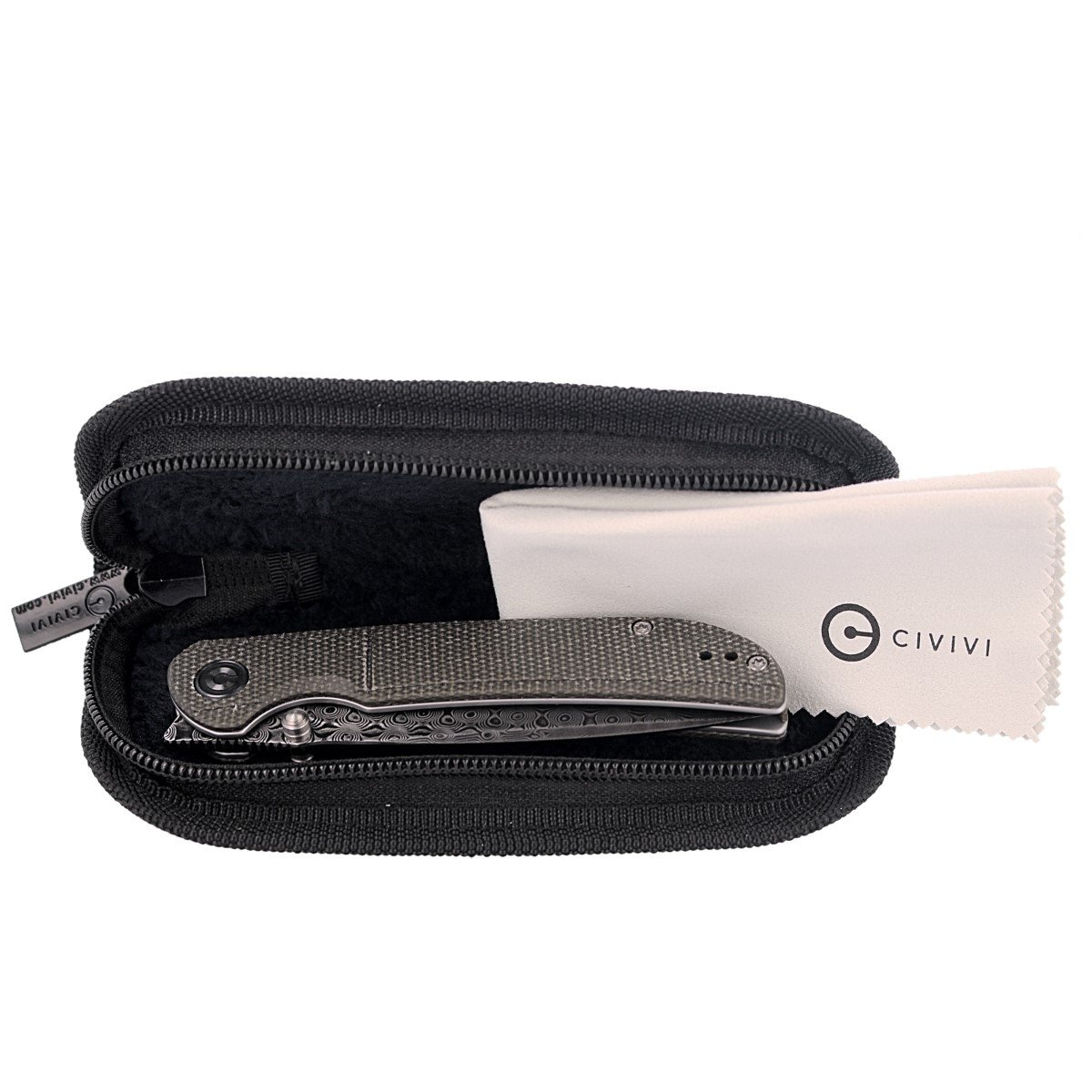 Case - knife is packed in a zippered soft nylon case with the brand logo for safe storage and transportation of the folder.