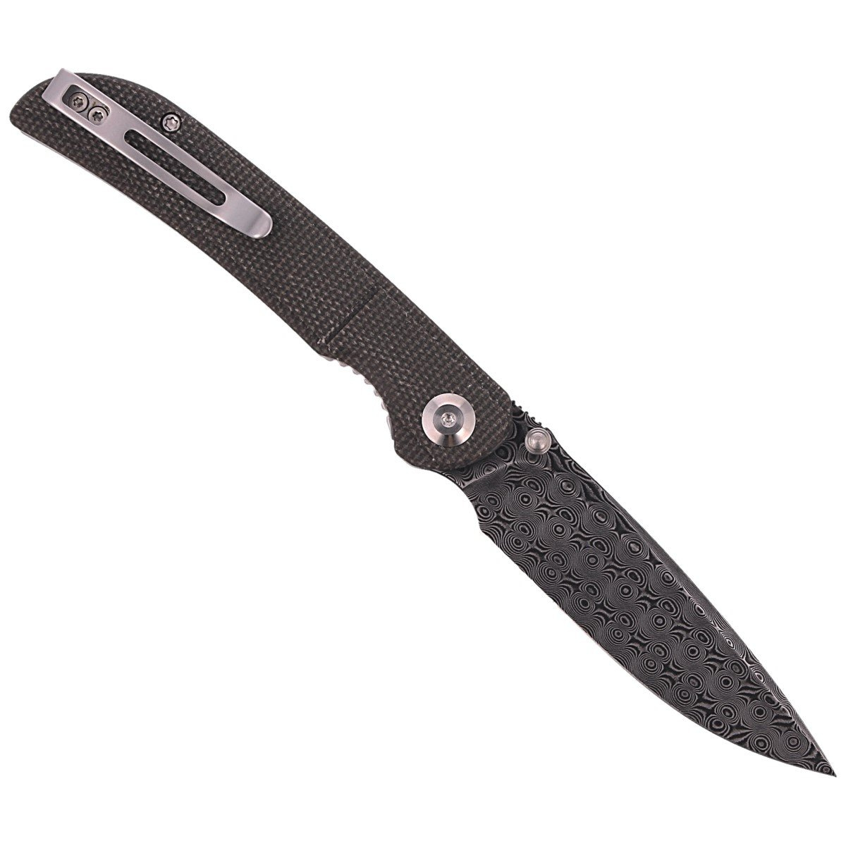 • Imperium Dark Green Micarta, Black Damascus excellent EDC knife made of good materials at an attractive price. Drop point blade of damscus opened with a Thumb Stud or Front Flipper. Brown micarta. Bestseller!