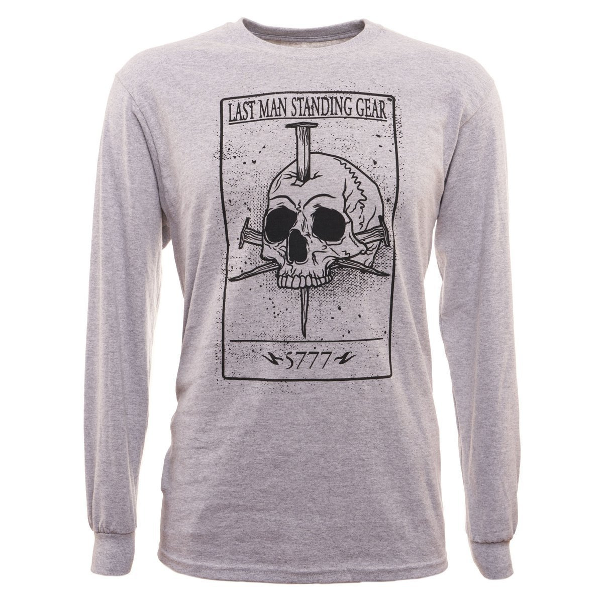 - Death Card Skull comfortable, loose-fitting long sleeve shirt from LSM Gear with print. "Death Card" motif with a skull and three Roman nails on the front and LMS Gear print on the back. Ideal as a base layer for colder days.