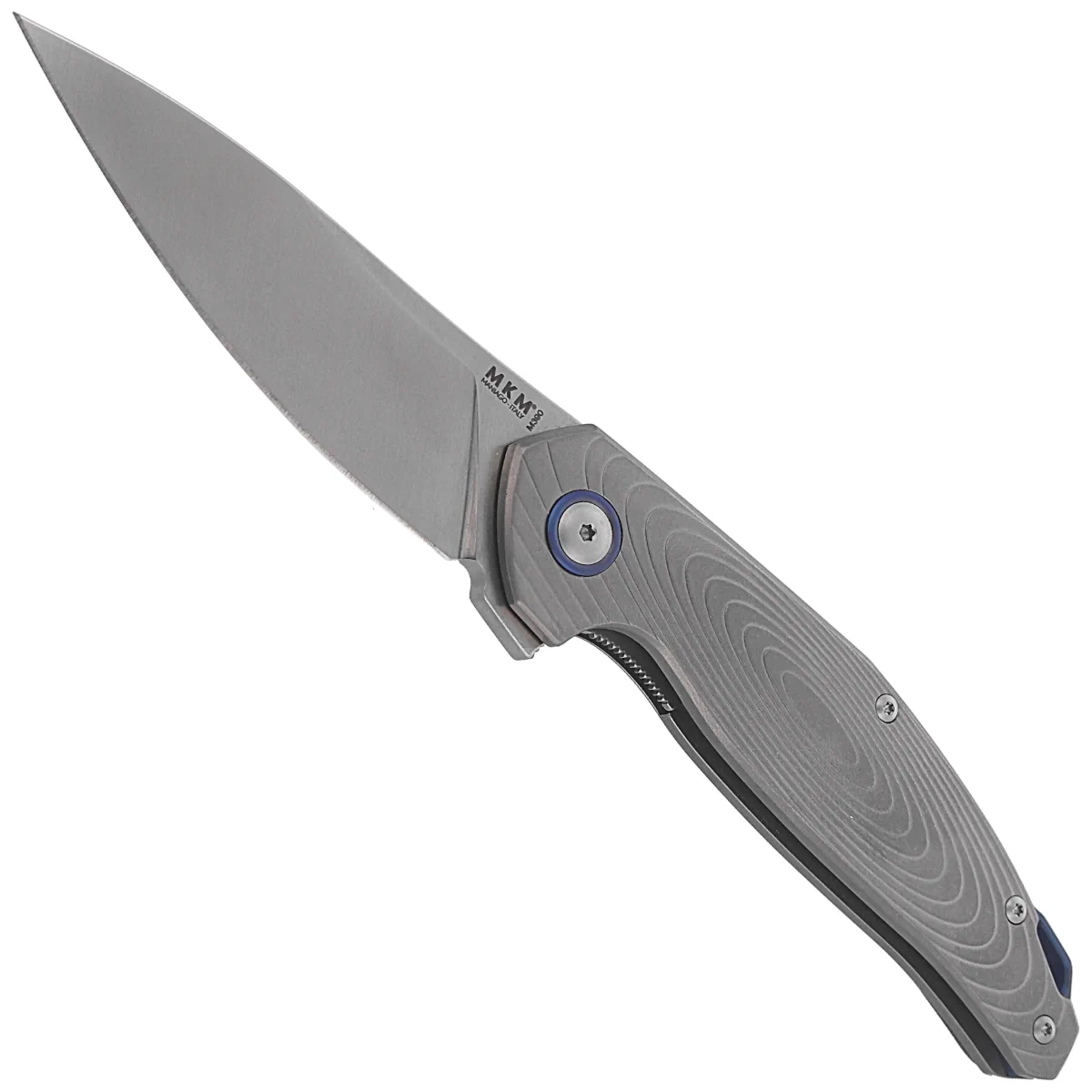 Goccia Bead Blasted Titanium, Satin when Danish knifemaker and knife designer Jens Ansø showed his custom model Neo, it became the dream of the "perfect knife" for many knife lovers. In cooperation with MKM, a top-quality production version of this model called Goccia was created. Goccia means "drop" in Italian and is meant to symbolize the first water-powered hammers in the forges that started the knife industry in Italy. The name is also reflected in the concentric ellipses carefully milled into the handle facings, which even mesmerize with their changing surface textures.