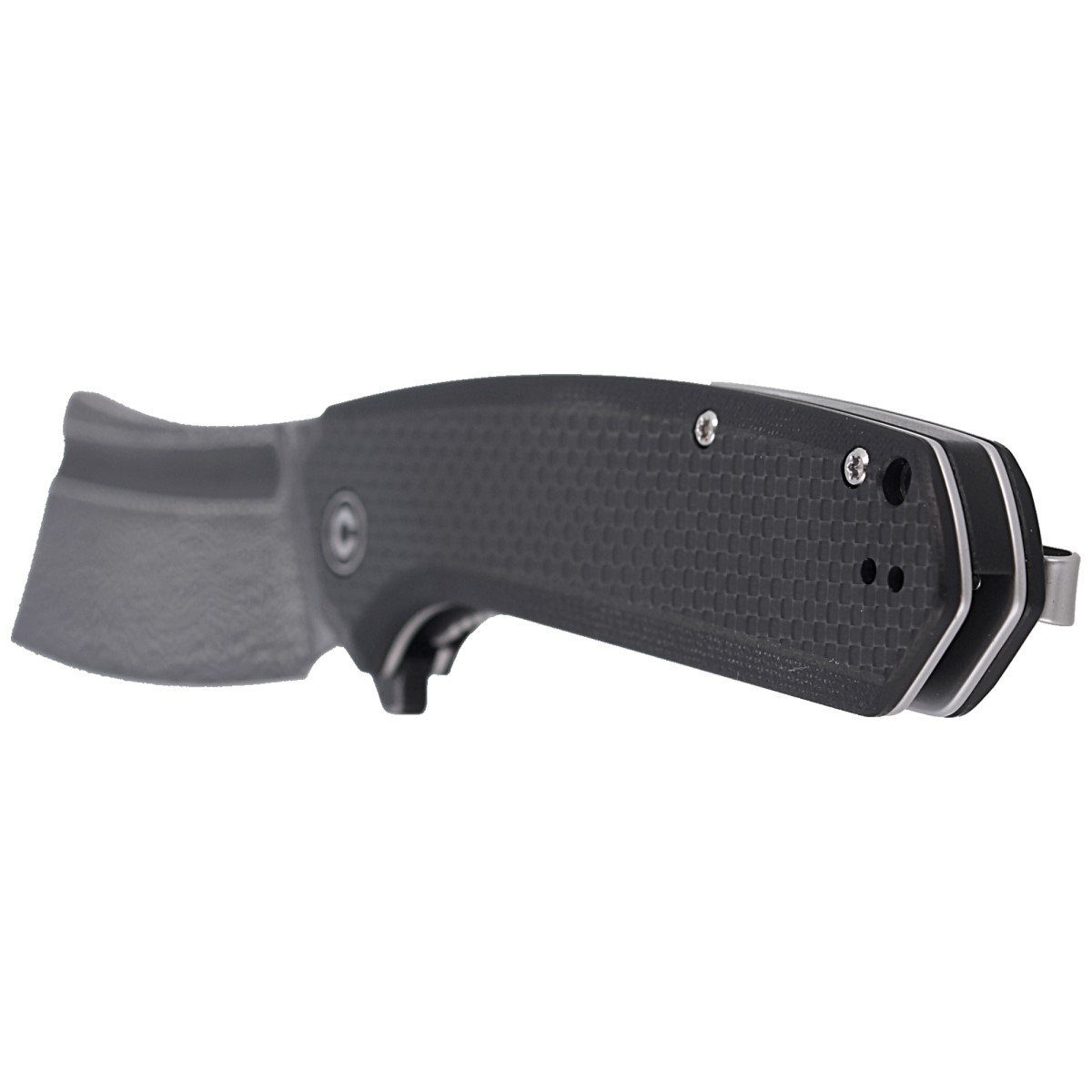 Handle - G10 layer, laminated with Carbon Fiber (carbon fiber) with Twill pattern. Smooth cover surface, but with a perceptible texture improving grip security. The whole is mounted to steel liners, which in practice means many years of use. Backspacer made of black G10. Pivot axis decorated with stylized Civivi brand logo. Two-position left/right metal deep carry clip allows you to carry the knife discreetly in your pocket in tip-up position. Above the clip is a lanyard hole.