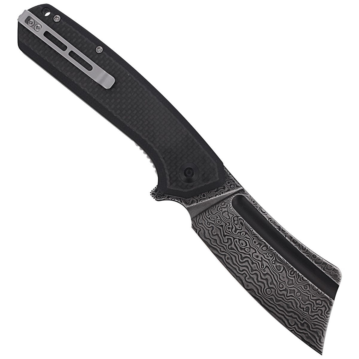CIVIVI Knife Bullmastiff Twill Carbon Fiber / Black G10, Black Damascus (C2006DS-1)