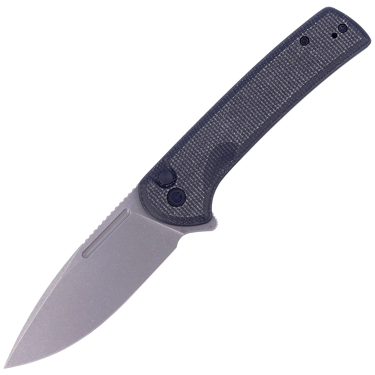 - Conspirator Black Micarta, Gray Stonewashed excellent EDC knife. Drop point head of NIitro-V steel opens by gravity or with a quick flipper. Micarta liners. Bestseller!