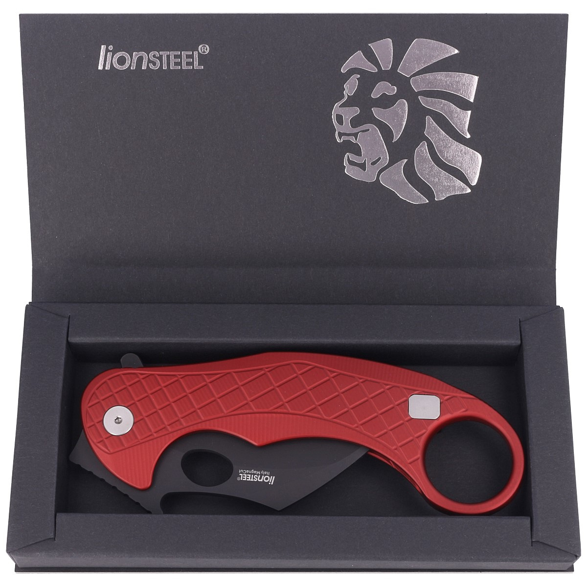 - L.E.One Karambit Red Aluminium, Chemical Black MagnaCut, the world's most technically advanced folding karambit! Lionsteel's patented technologies and unique Emerson Design!