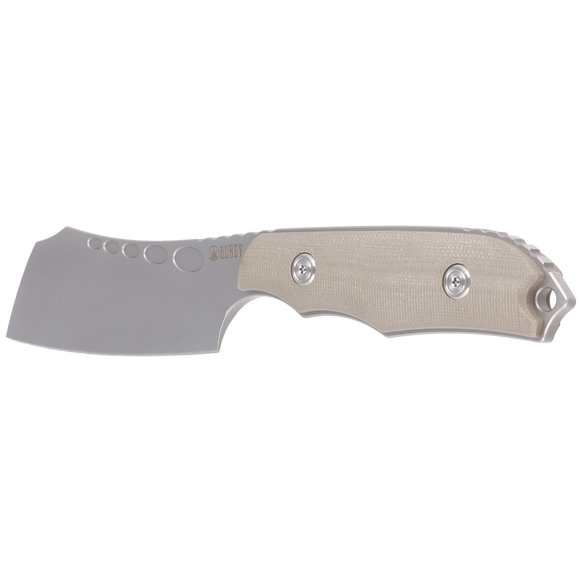 - Aiden, Tan Micarta, Sand Blasted D2, an undersized fixed blade knife. Extremely handy and easy to carry due to its size and weight. Full tang construction and D2 steel will ensure trouble-free use. Comes with a leather sheath.