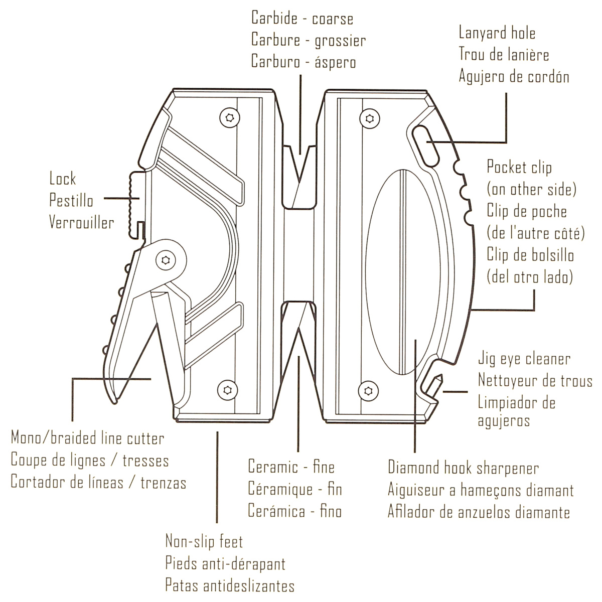 Smith's Regal River Fishing Tool is a compact multi-functional tool for fishermen. It allows you to sharpen knives, small tools, fishing hooks and more easily and efficiently. The clip allows you to carry it in your pocket, loss is prevented by the included cord.