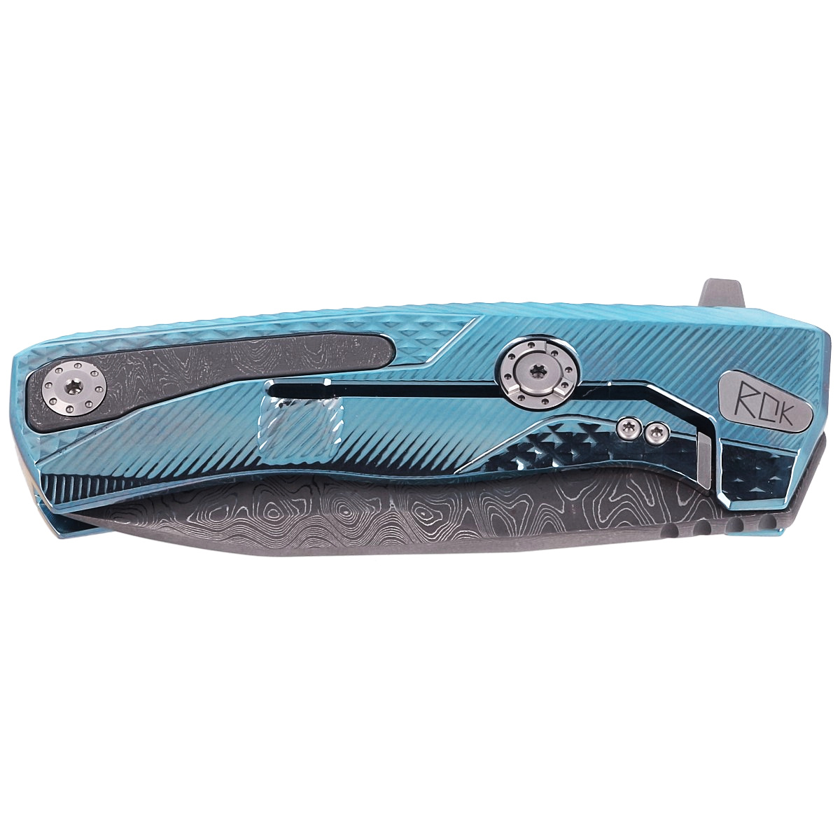 - ROK Blue Titanium knife, Chad Nichols Scrambled Damascus