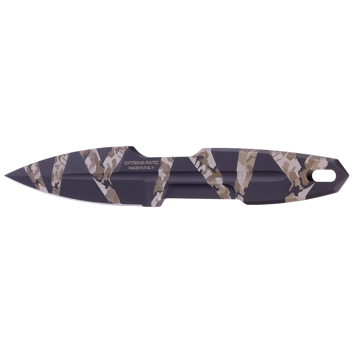 Handle - an extension of the blade. Finished with a diamond-shaped spike, skull crusher. It can be used to hit specific points of the body, safely breaking glass or other hard materials. The finger milling at the bottom of the handle, characteristic of Extrema Ratio, improves the ergonomics of the grip, and also creates a mini guard to prevent the hand from slipping on the blade. The long hole in the back of the handle can be used to create a braid on the handle (e.g. from paracord) or as a Lanyard Hole.