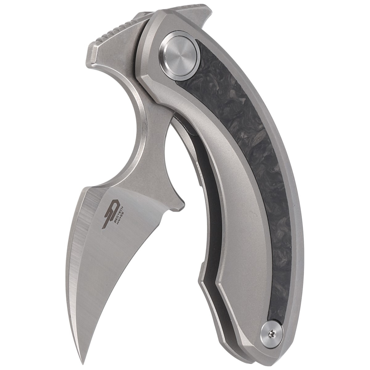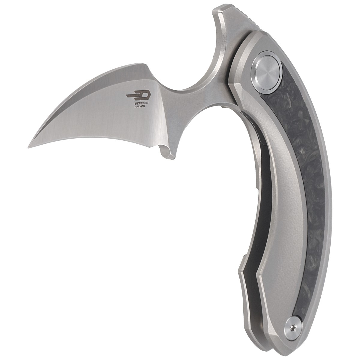 Strelit Gray Titanium / Black Marbled Carbon Fiber, Stonewashed extraordinary push dagger folder for discerning buyers, the result of cooperation between Polish designer Ostap Hel and Bestech Knives company. Ergonomic handle, excellent blade steel!!!