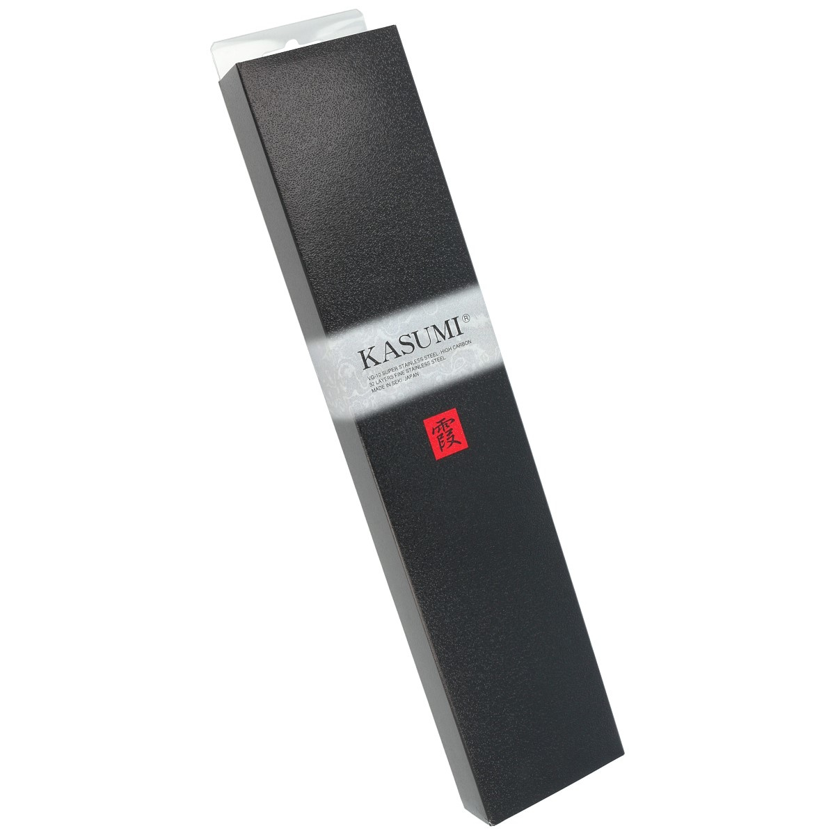 Kasumi is a spring mist, a well-known phenomenon in Japan that settles over the mountains and sheltered valleys of rural Japan. The pattern on the blade tries to convey the beauty and mystery of this phenomenon. Kasumi knives are manufactured in Seki City famous for producing the highest quality knives.