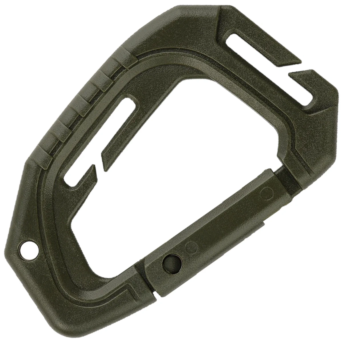 The M-Tac Tactical 93mm clip hook has a hole in the lower part for attaching a key ring.