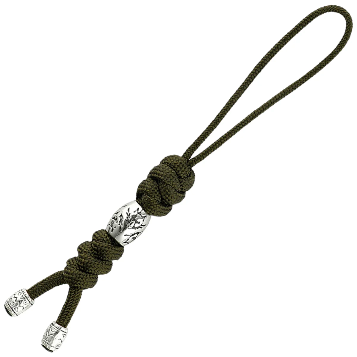 M-Tac Zeus Stainless Steel Olive, a tag for knife, flashlight, keychain, made of paracord, finished with a metal bead with a Greek pattern. In addition to its aesthetic value, it extends the handle of the knife, making it easier to take it out of the pocket. It also excels as an extension of the zipper in a jacket, allowing comfortable use of the zipper even with thick gloves.