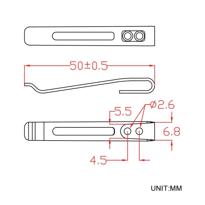 - Steel clip for WE and Civivi knives, for all models with the appropriate mounting hole spacing. Not screws included