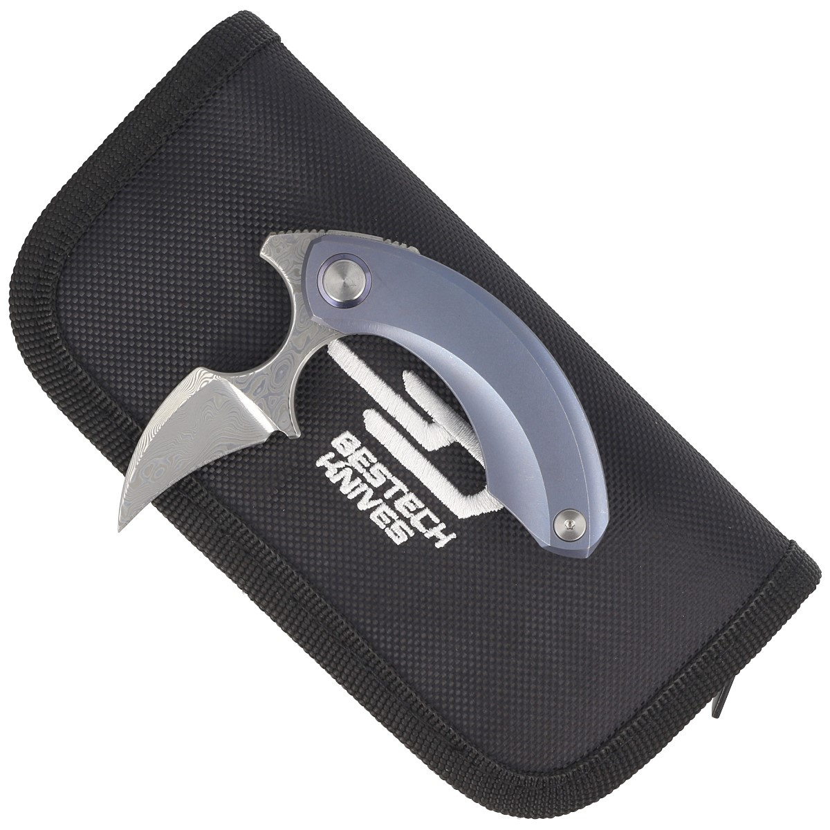 - Strelit Blue Titanium, Damascus extraordinary push dagger folder for discerning buyers, the result of cooperation between Polish designer Ostap Hel and Bestech Knives company. Ergonomic handle, extraordinary blade steel!!!