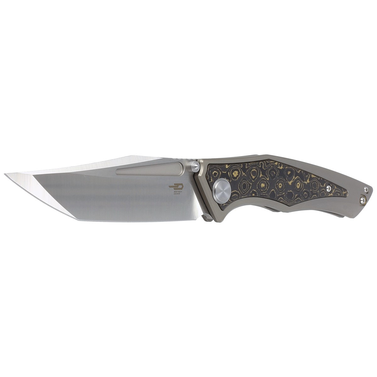 Togatta Light Bronze Titanium/Damascus Copper Carbon Fiber, Satin Flat Satin, one of Bestech's flagship knives designed by Morgan Koens. A beautiful, versatile folder, for EDC applications as well as heavier field work! Stand out!