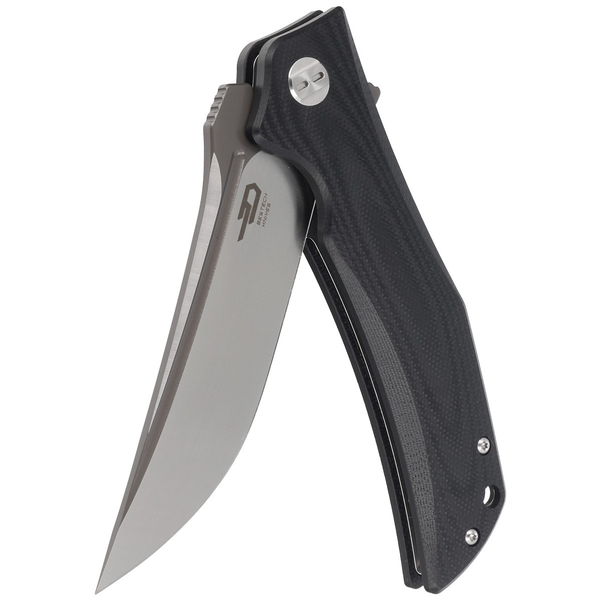 Scimitar Black G10, Gray / Satin a handy EDC folder with a slightly exotic look. Made with characteristic Bestech care. There are G10 facings on the handle, a blade made of proven D2 tool steel, and all this at an excellent price!