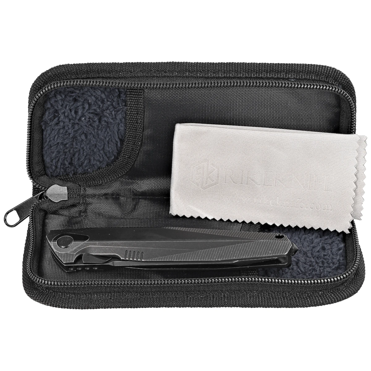 Case - the knife is packaged in a zippered nylon soft pouch with the brand's logo for securely carrying and storing the folder.