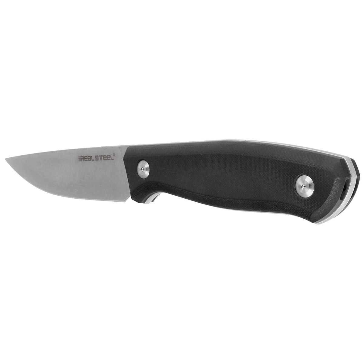 • Arbiter Black G10, Stonewashed, an all-purpose knife by Real Steel for off-road expeditions. 9Cr18Mov stainless steel, comfortable contoured G10 grips, plastic sheath that allows attachment in multiple positions. A knife that will not disappoint!