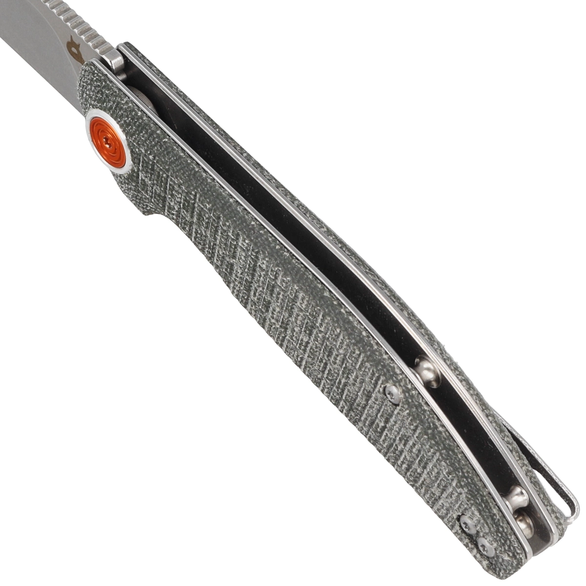 • Artia Green G10, Stone Washed, a slim and elegant EDC folding knife designed by Grigorii Matveev. Excellent grip ergonomics and blade to handle ratio. D2 tool steel, G10 on the handle, a knife that will not disappoint!