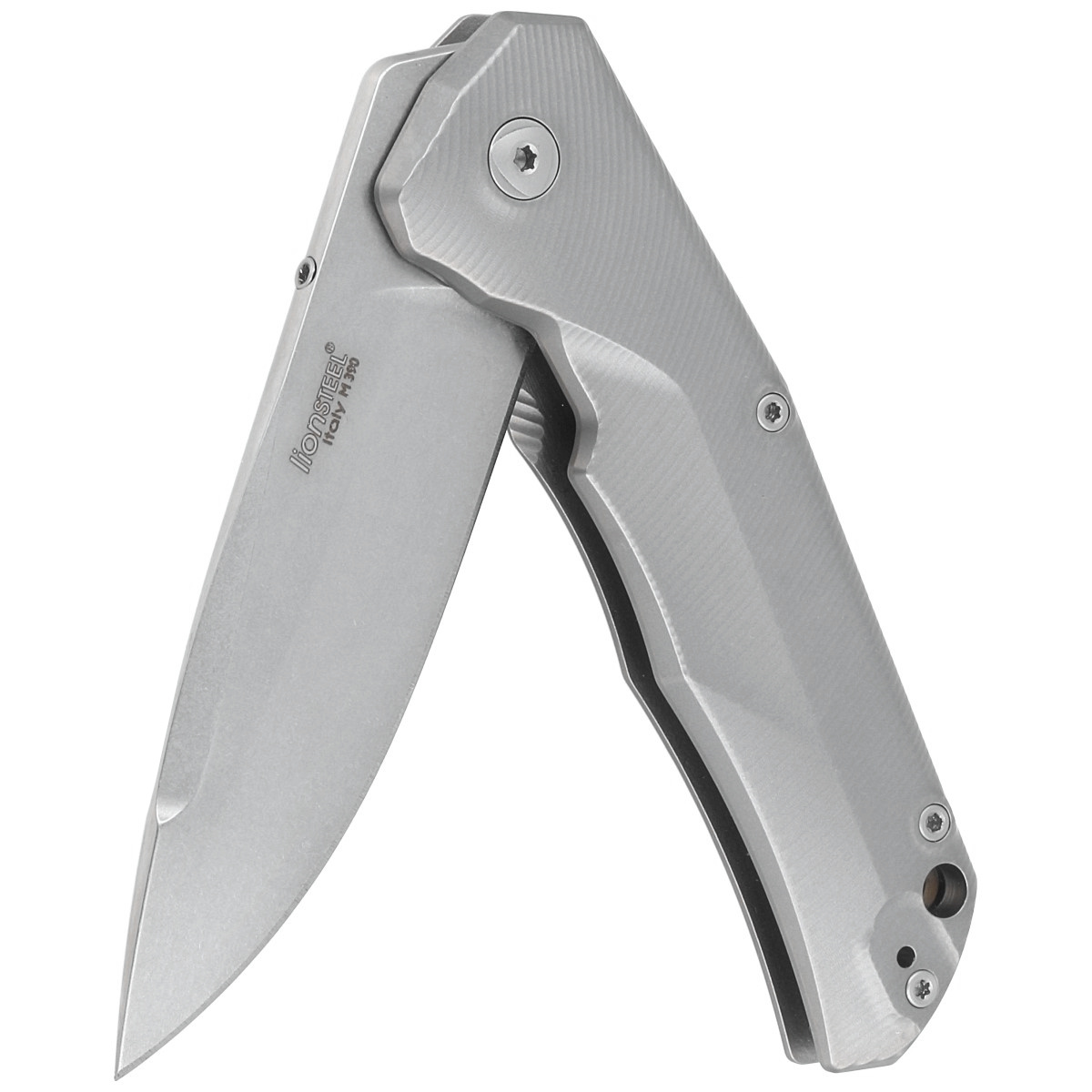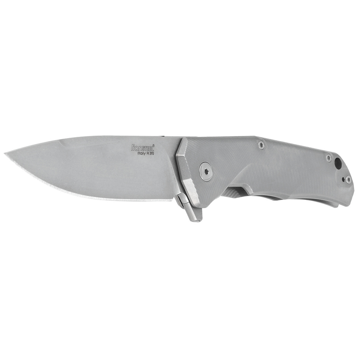 Blade - Drop Point finished in an elegant Satin method. Plain blade derived with Flat Grind which gives excellent cutting edge geometry and extreme cutting performance. Frame-Lock reinforced monolithic 6AI4V titanium blade lock, one of the grip grips acts as a locking mechanism. Located on the underside of the blade, the IKBS-assisted protrusion / flipper makes it easier to open the blade. In the open position it serves as a lower guard / hilt protecting the hand from slipping off the handle. In the upper part, the characteristic milling used to open the knife with the Flipper and Thumb Discie removed.