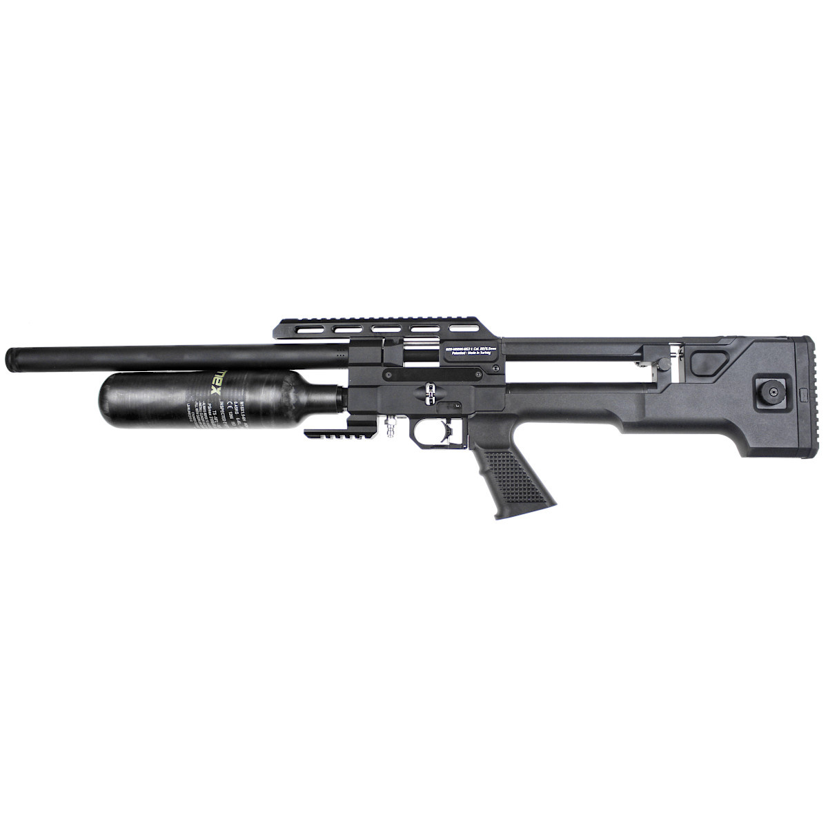1 224,43 €Reximex Throne Gen2 Carbon, modern PCP air rifle in the version known for its offset chamber and magazine behind the trigger Bullpup z lightweight carbon fiber cartridge. By using a cradleless, obtained compact dimensions of the rifle, while maintaining the normal length of the barrel to guarantee accuracy and range, as well as the weight reduction typical of this design for better control. Throne Gen2 is equipped with lever tensioning Side Lever, shot power regulator, knob trigger mechanism adjustment and a barrel with an integrated sound suppressor. Davailable in calibers: .177 (4.5 mm), .22 (5.5 mm), .25 (6.35 mm).