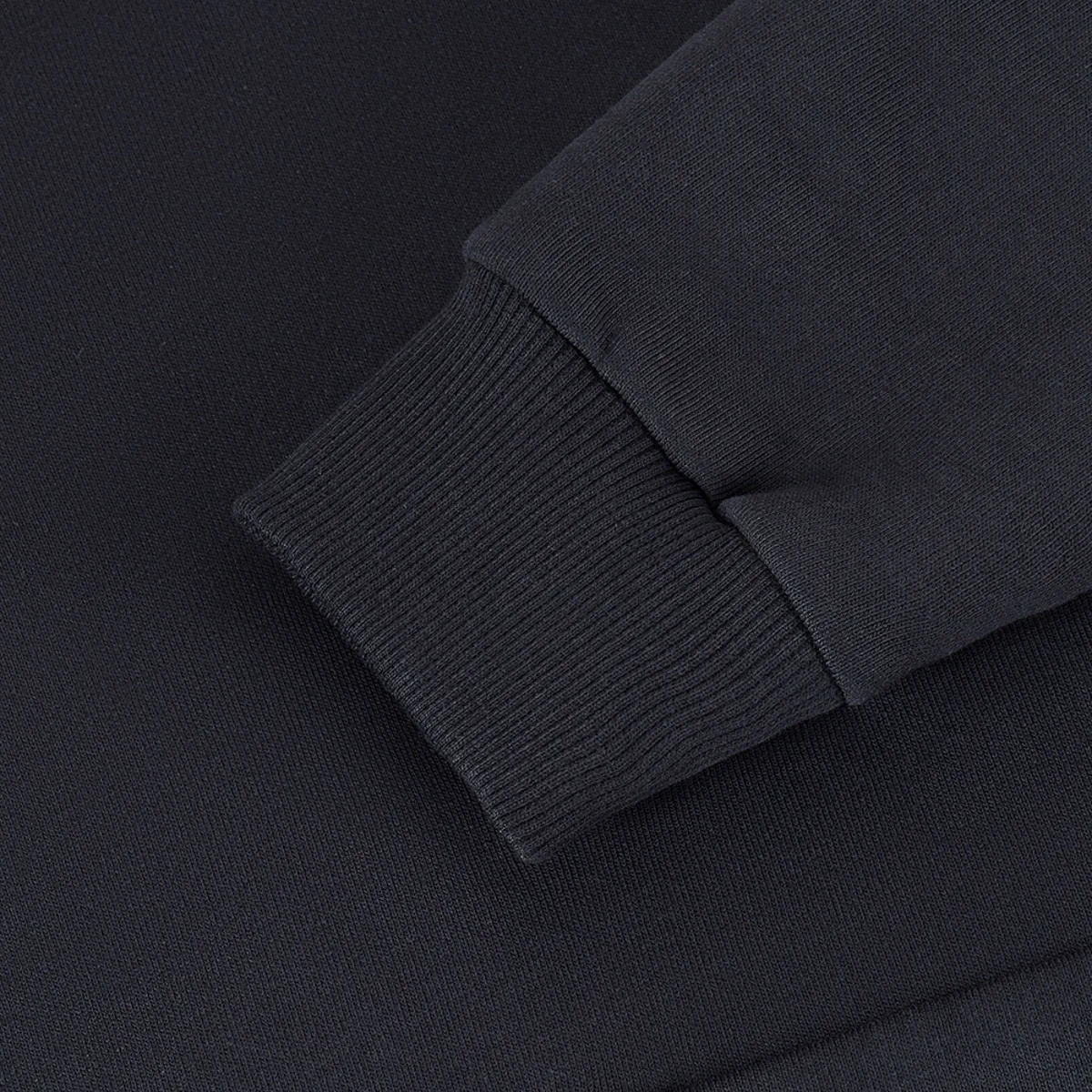 Cut: the sweatshirt is loose and does not restrict movement. Hands can be warmed in the kangaroo pocket. It has a hood and cuffs on the sleeves that protect against wind and cold penetrating the fabric.