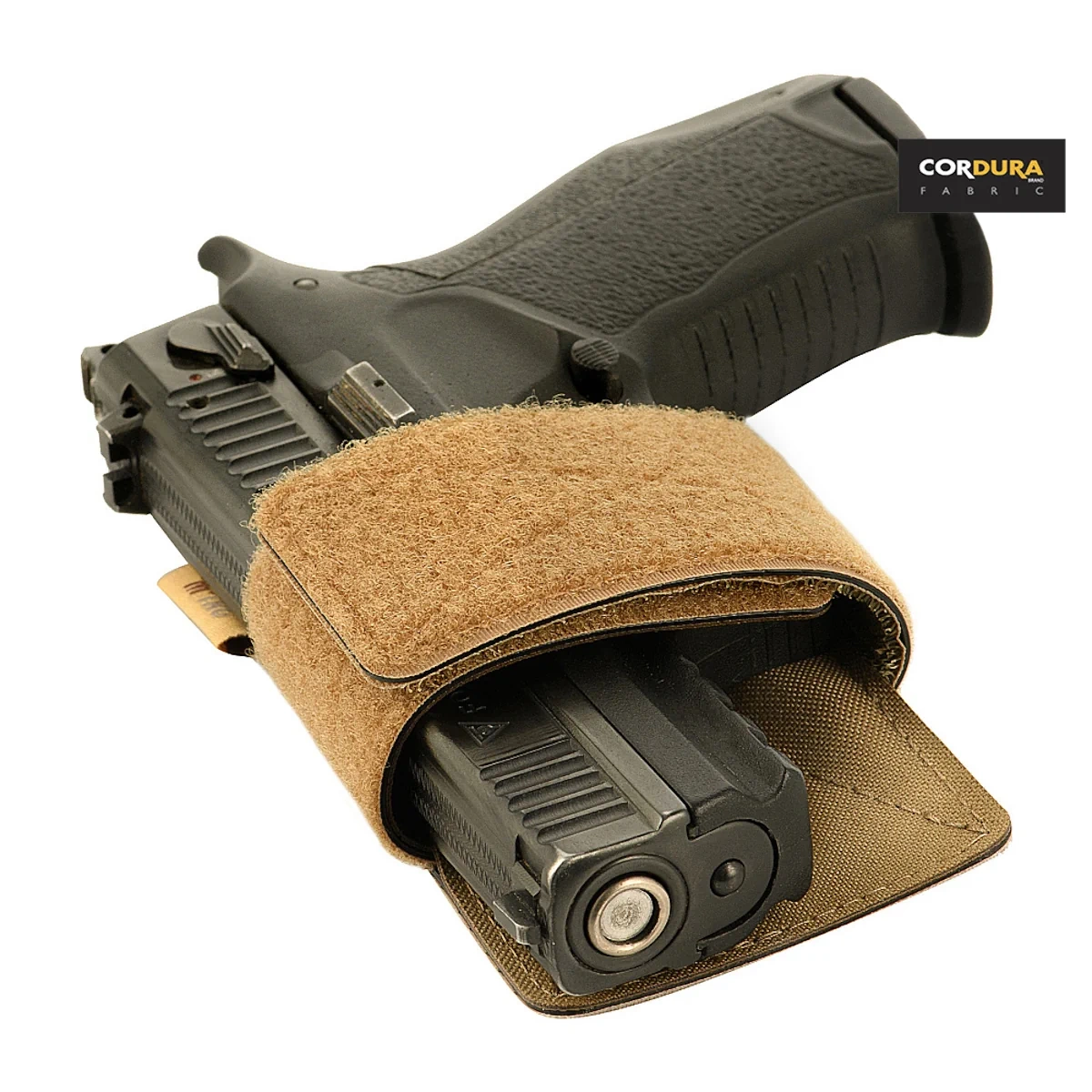 • Universal internal holster by M-Tac. Designed for concealed carrying of handguns in a waist bag, bag or backpack equipped with a Velcro panel. Fits most pistols including Glock 17/19, Colt 1911, CZ-75, Walther P99.