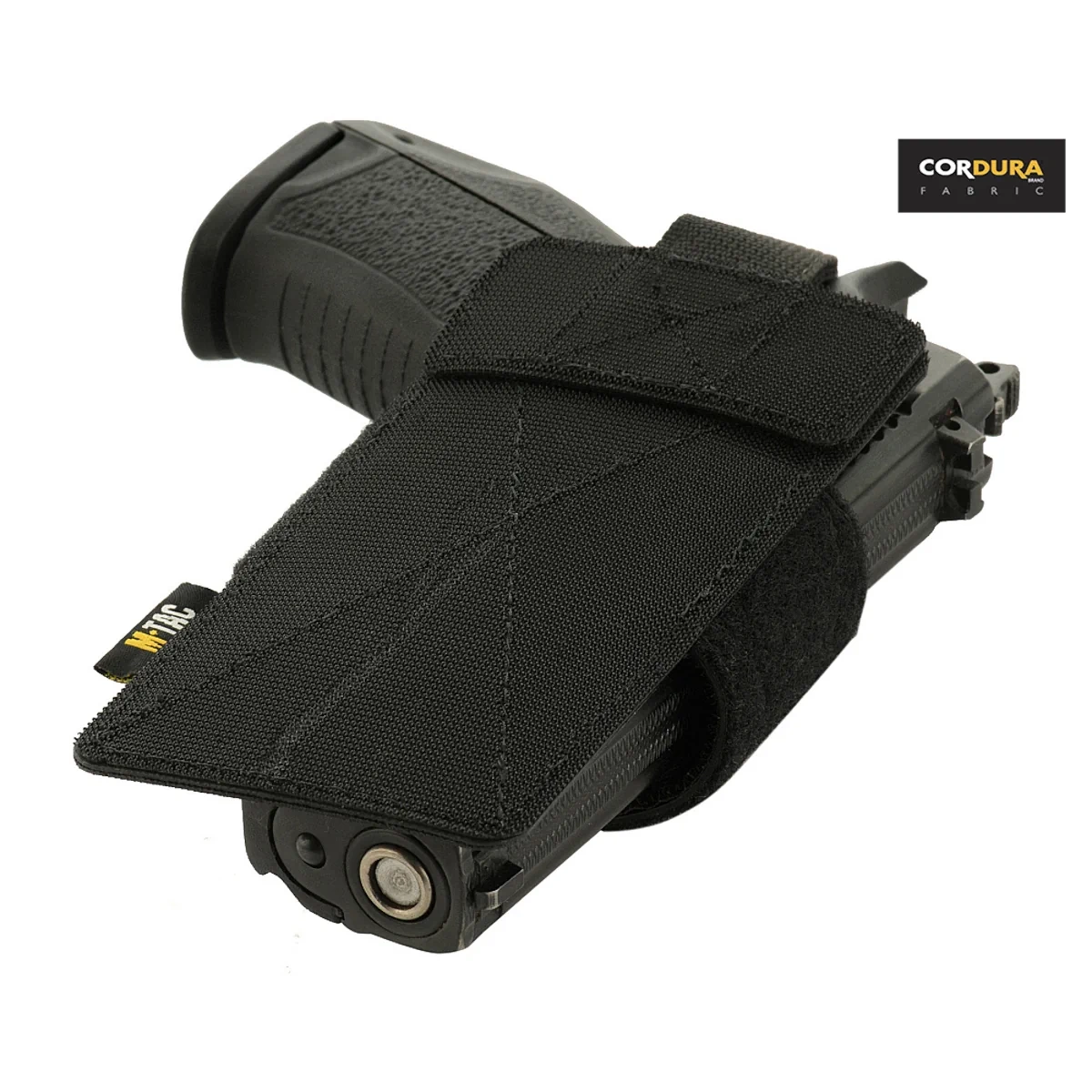 • Universal internal holster by M-Tac. Designed for concealed carrying of handguns in a waist bag, bag or backpack equipped with a Velcro panel. Fits most pistols including Glock 17/19, Colt 1911, CZ-75, Walther P99.