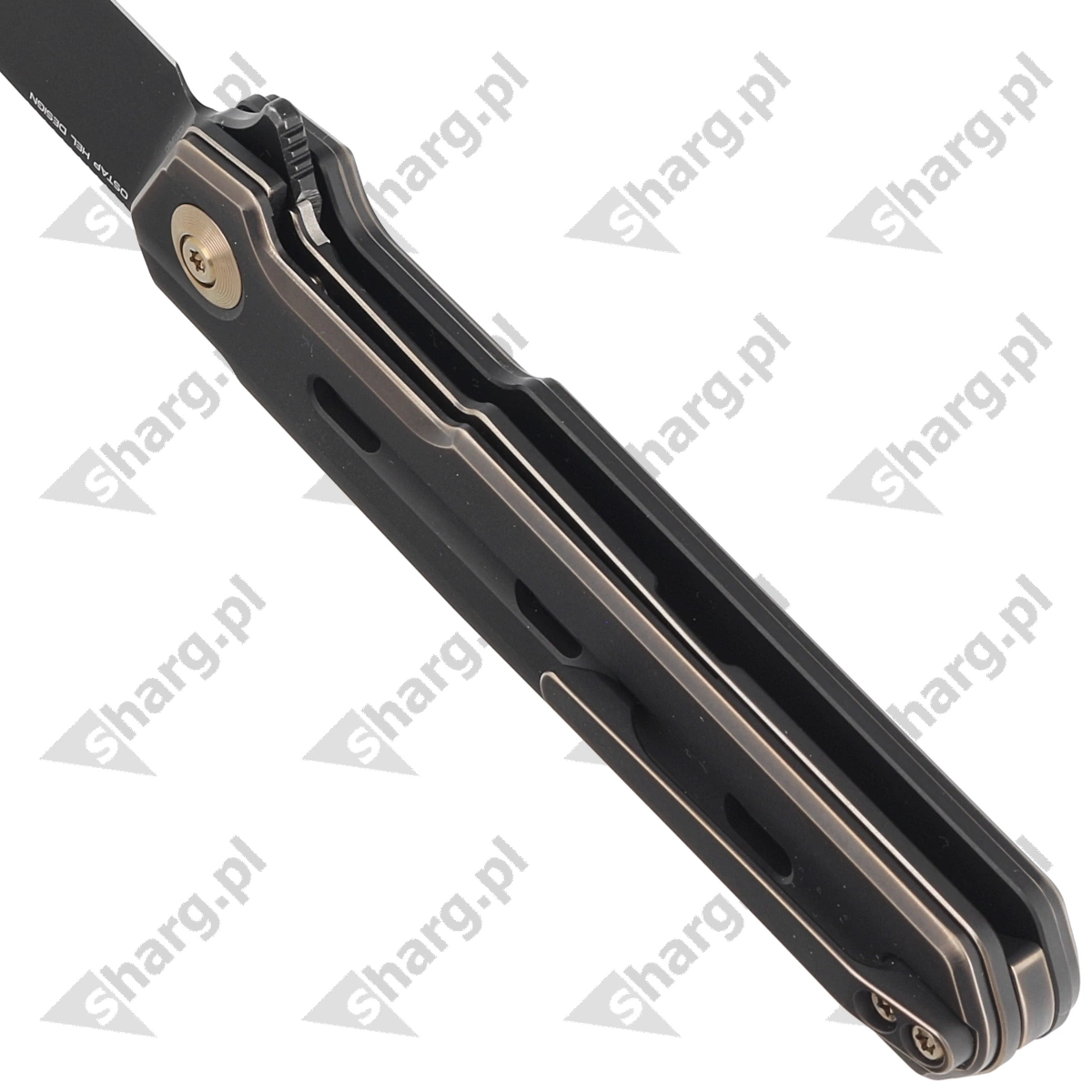 Navo Bronze / Black Titanium, Black Stonewashed, an elegant EDC folding knife designed by Polish knifemaker, Ostap Hel. Easy to carry, excellent 20CV blade steel, Handle made of pleasant to the touch Carbon, incredible workmanship WE Knife! Perfection!