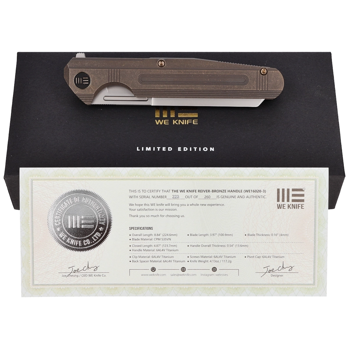 WE Knife Reiver LE No 223/260 Bronze Titanium, Silver Bead Blasted CPM S35VN knife (WE16020-3)