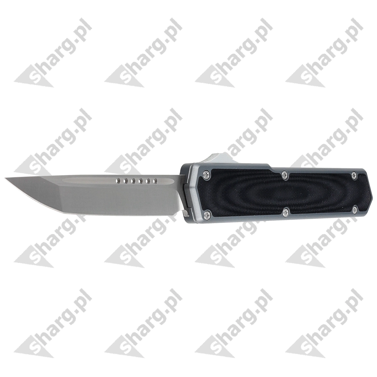 Vigor V2 Black G10 / Grey Aluminum, Satin automatic knife OTF (Out The Front) blade extends from the front. Operates in D/A (Double Action) mode with a slider on the back of the handle to extend and retract the blade. Strong construction, reliable operation reasonable price. Bestseller!