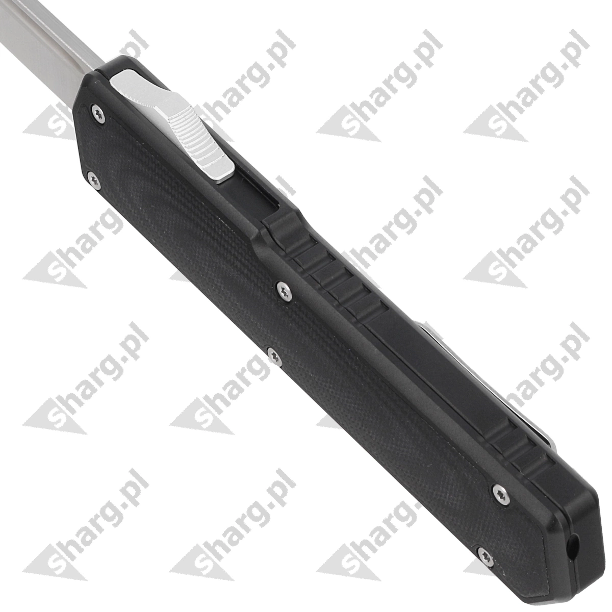 Vigor V2 Black G10 / Aluminum, Satin automatic knife OTF (Out The Front) Blade extends from the front. Operates in D/A (Double Action) mode using the slider on the back of the handle to extend and retract the blade. Strong construction, reliable operation reasonable price. Bestseller!