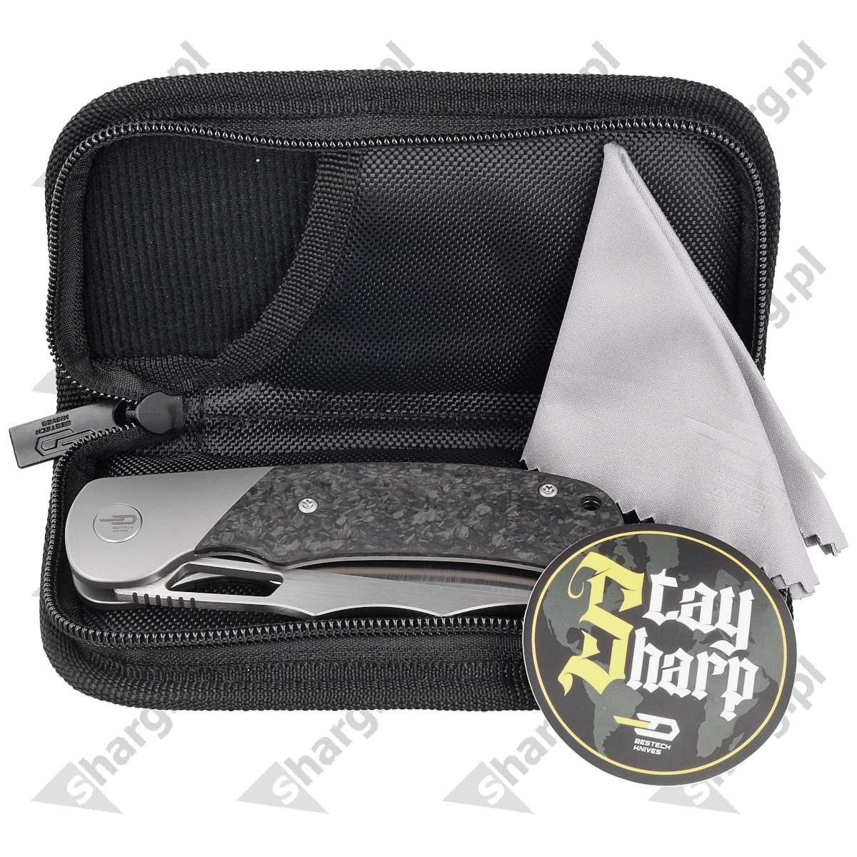 Nóż składany Bestech Syn Grey Titanium / Marble Carbon Fiber, Hand Rubbed Satin Elmax by Evolved EDC (BT2306A)