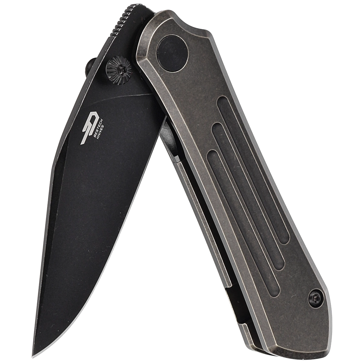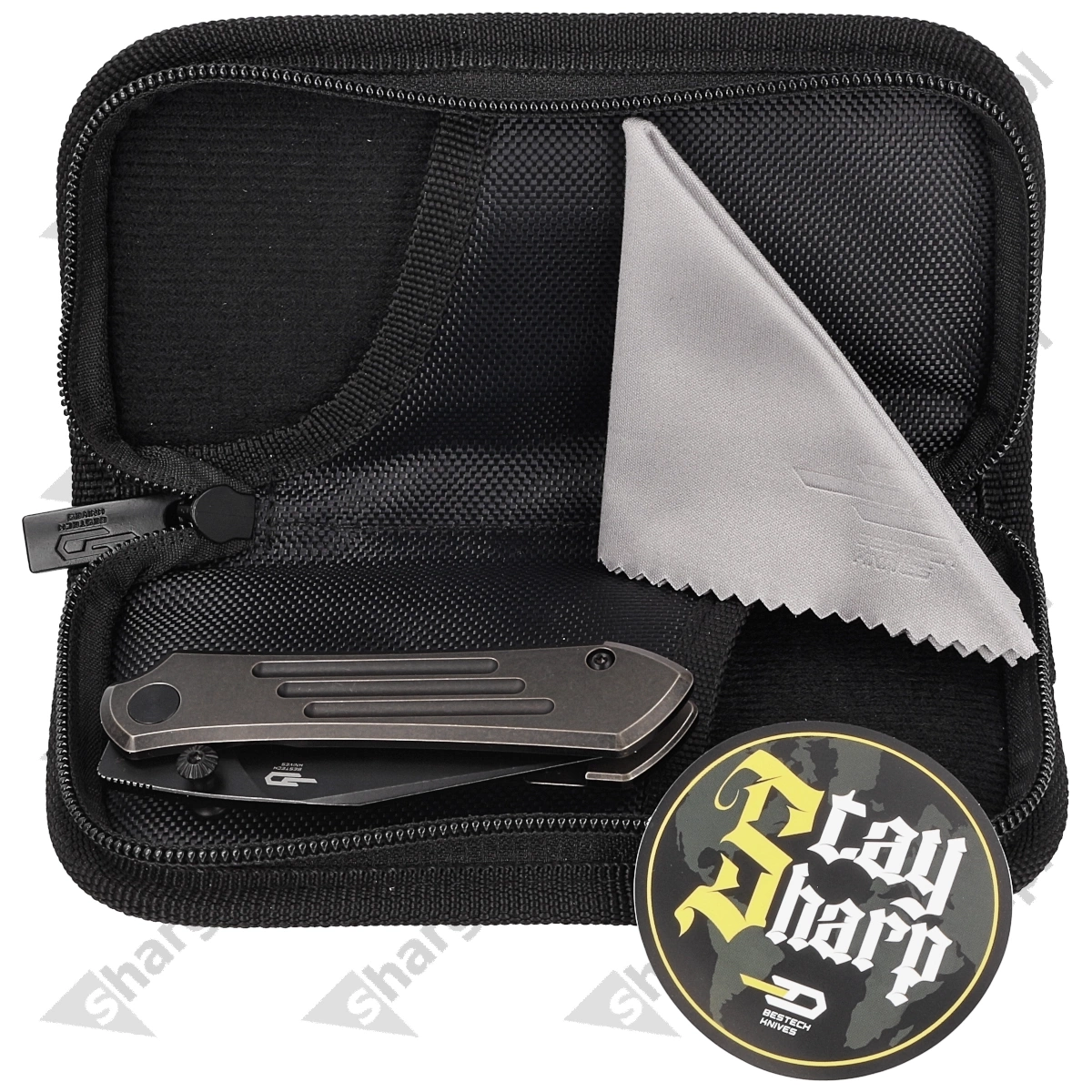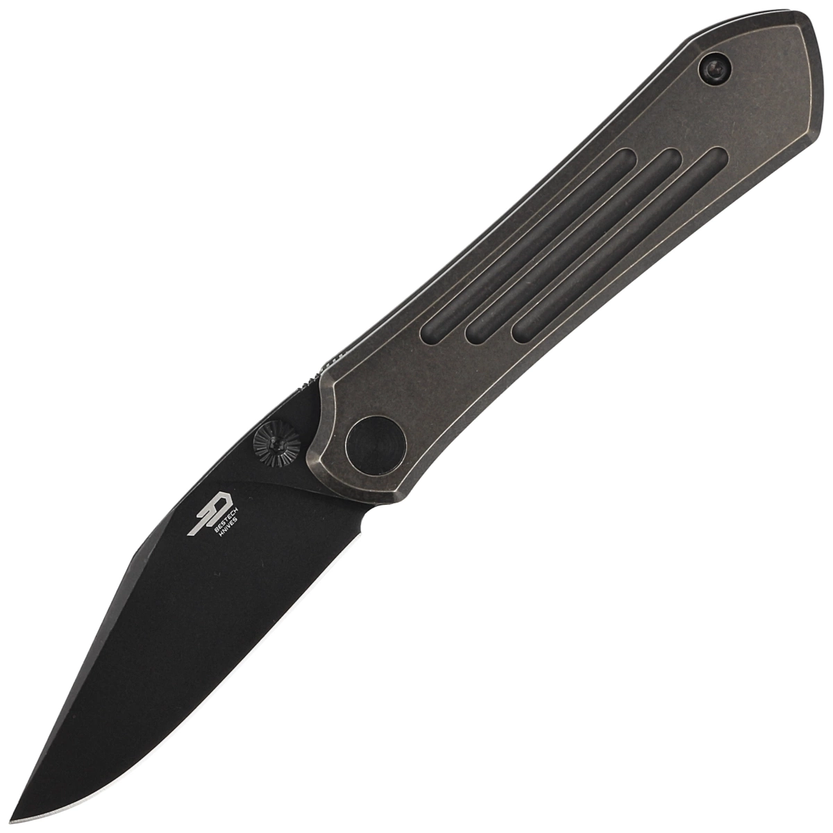 Icarus Black Bronze Stonewashed Titanium, Black Stonewashed is the top of the line among folding knives produced by Bestech. Designed by Nick Rogers a young knifemaker from the USA, made with uncompromising quality by Bestech. Nick designs his knives as total cutting tools and the whole design is subordinated to that. When you add one of the world's best M390 tool steels, the result is one hell of an EDC knife!