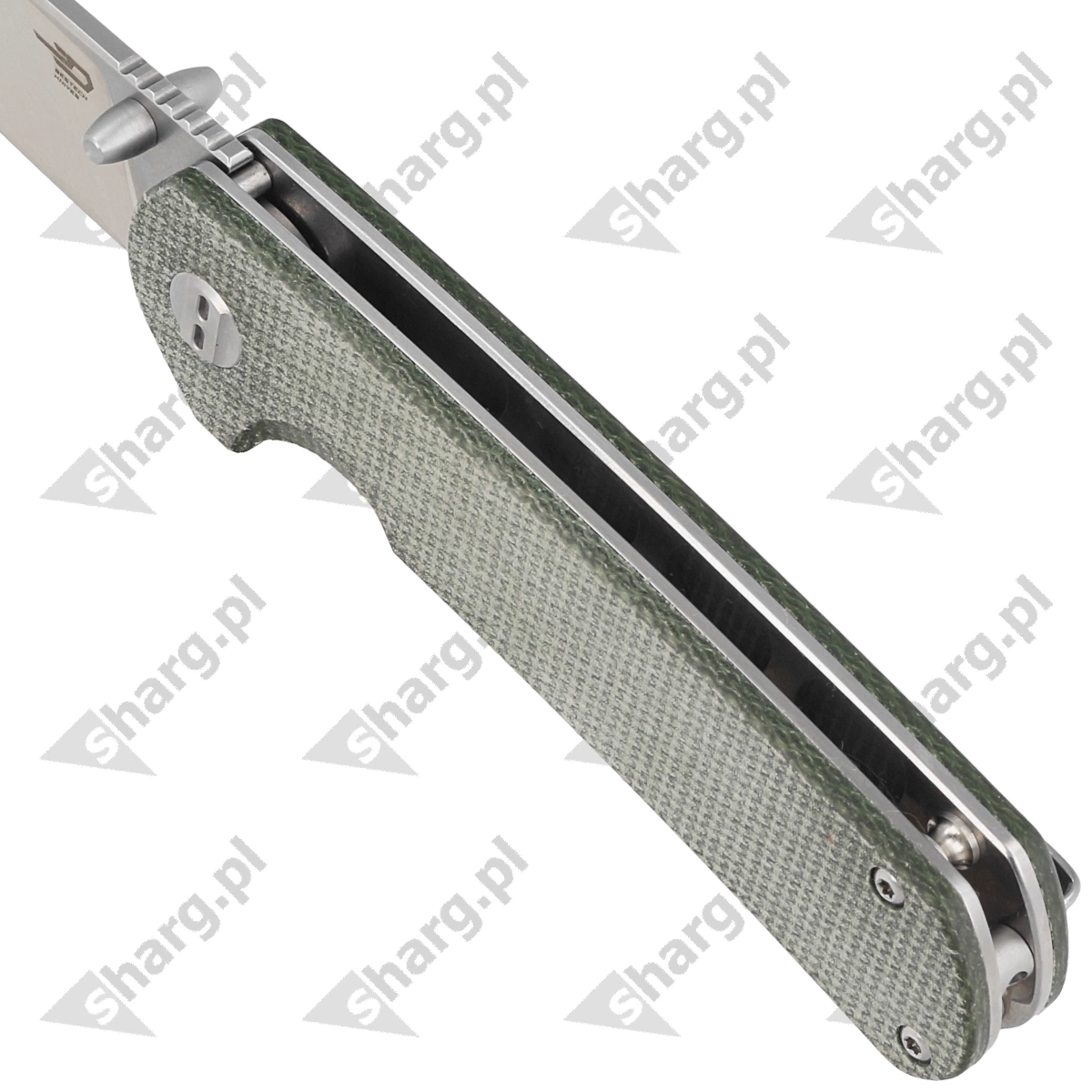Sledgehammer Green Micarta, Satin / Stonewashed, compact, powerful EDC folding knife with excellent value for money. Comfortable, ergonomic handle made of virtually indestructible G10 plastic, D2 Tool steel blade. Bestseller!