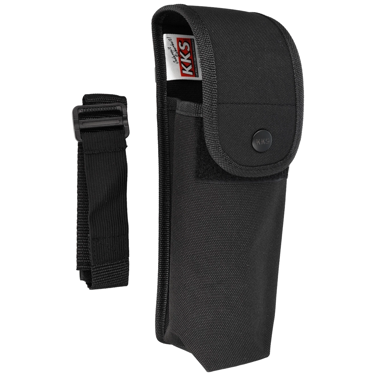 Professional police thigh holster from German company KKS. Designed to carry RSG Police brand Vesk handheld gases with a capacity of up to 400 ml equipped with a Police Pistol Head. Created to meet the needs of uniformed services (police prevention squads), the loader focuses on safety. It protects the container from damage and does not tend to move on the belt.