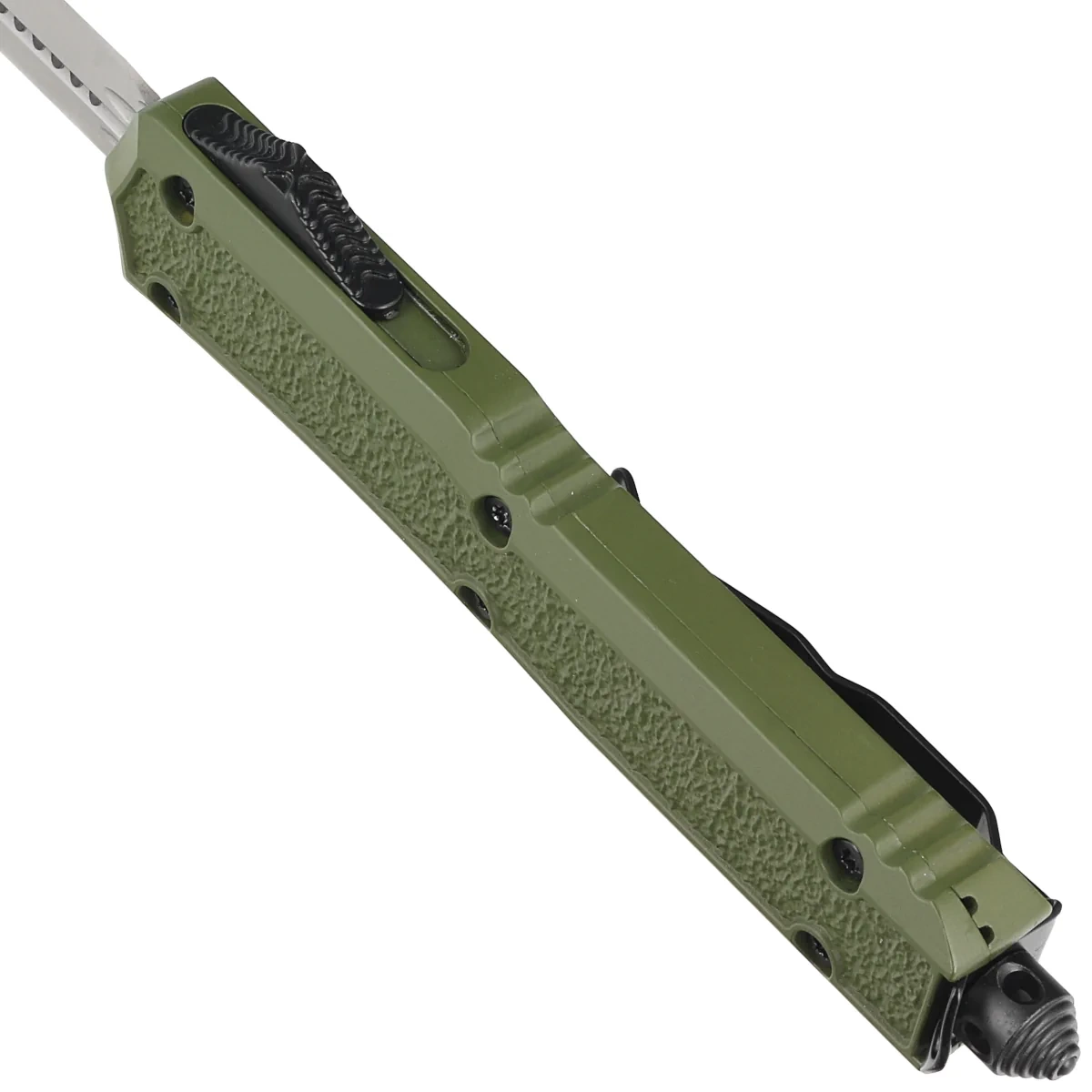 - Dulotec OTF OD Green Aluminium, Satin automatic OTF (Out The Front) knife in D/A (Double Action) mode, i.e. retract and extend the blade with a slide. Strong construction, reliable operation and reasonable price. A bestseller!