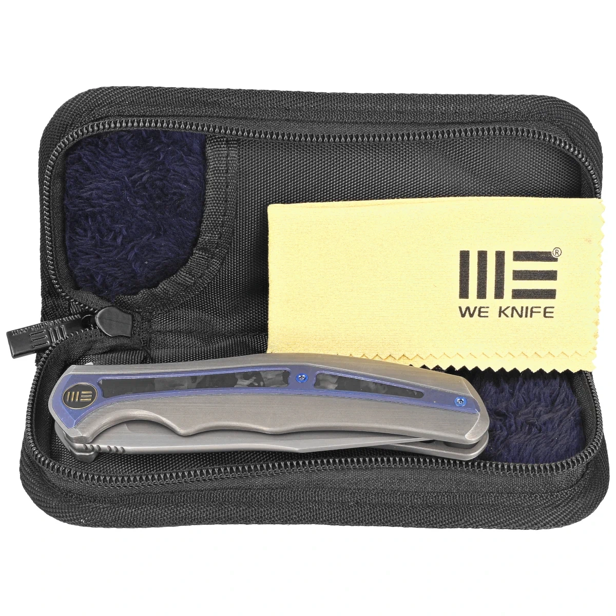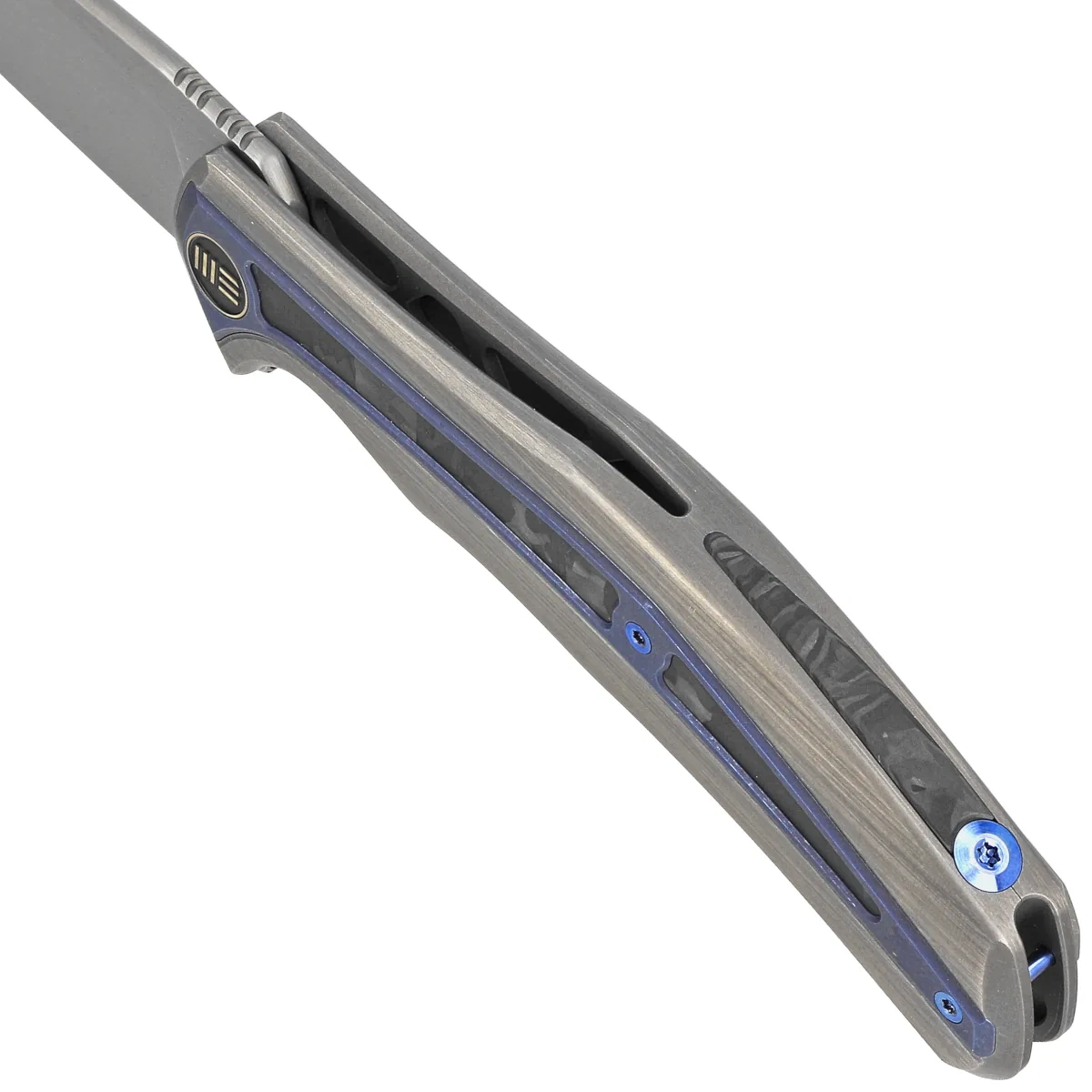 Zonda Gray Hand Rubbed Titanium / Marble Carbon Fiber, Gray Hand Rubbed, the result of a collaboration between Kellen Bogardus and WE. A striking folding knife in CPM 20CV steel, a versatile EDC with an integral backspacer. The perfect companion for those who want to stand out from the crowd!