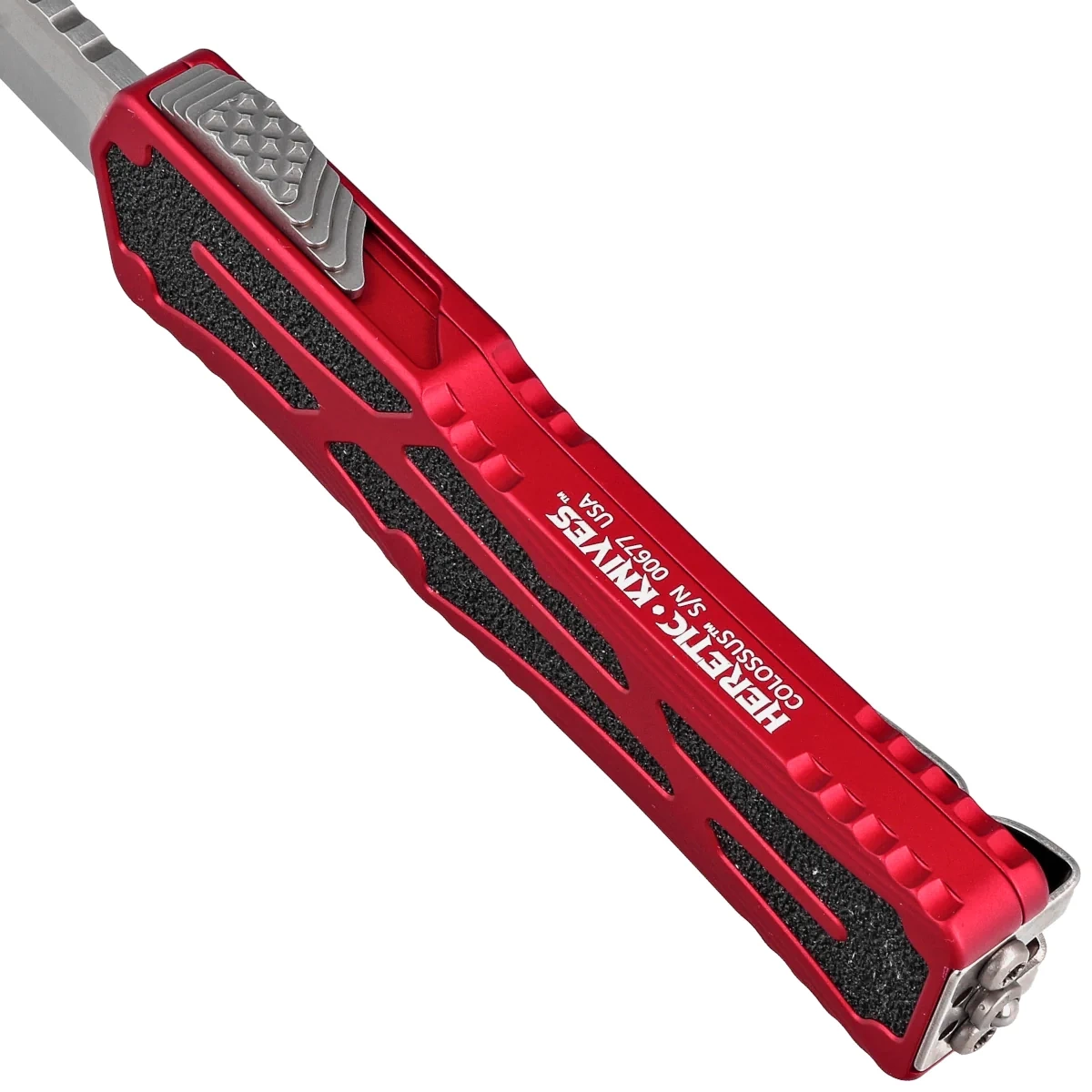 - Colossus Recurve Red Aluminium, Stonewashed MagnaCut. Operating in D/A mode, the OTF automaton uses a slide mechanism that operates with great force and power. Customised version by Tony Marfione Jr of Heretic Knives.