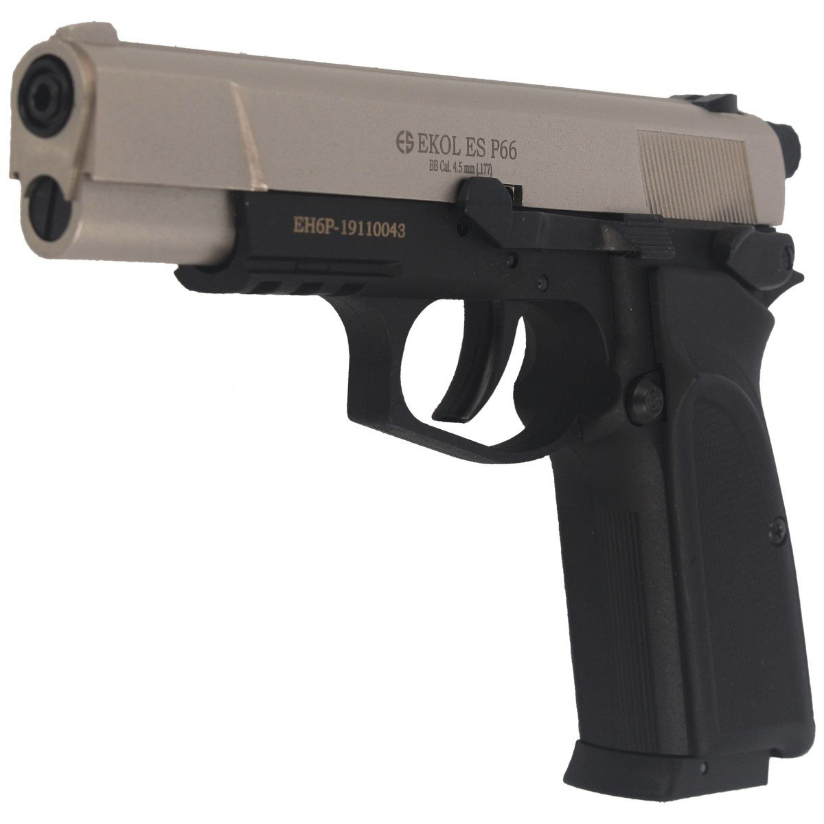 - Ekol ES P66 Satin is an ultra-lightweight, semi-automatic air pistol based on the design of a signal firearm. With such strong roots, this high-powered airgun reaching speeds of 150 m/s, is perfectly suited for dynamic sport shooting and tactical training