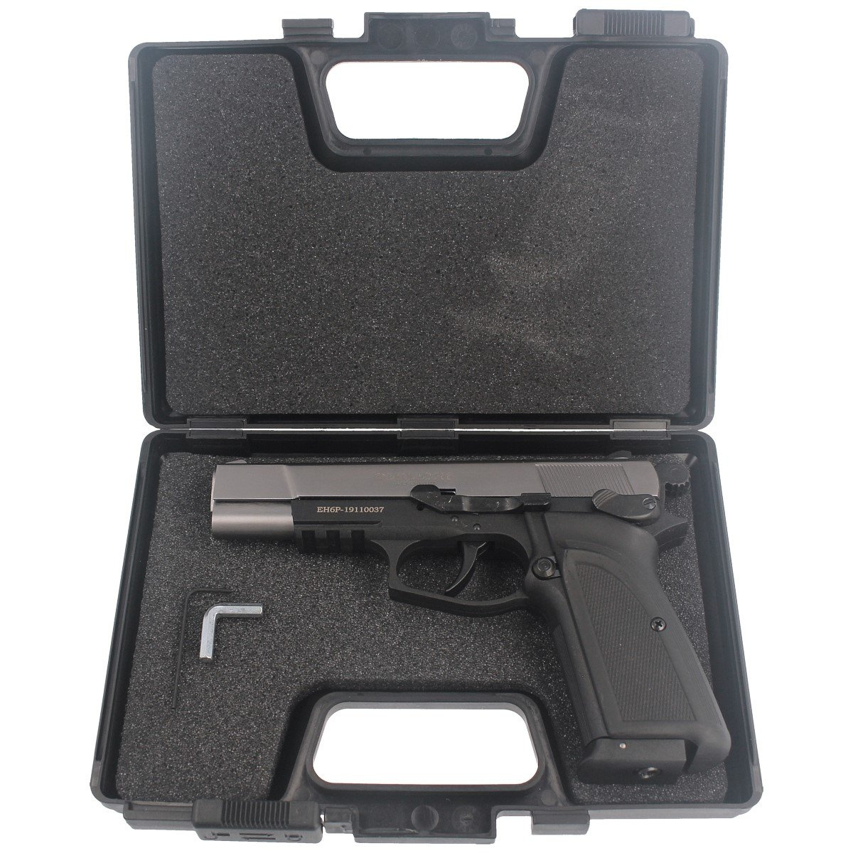 65,74 €Ekol ES P66 Fume is an ultra-lightweight, modern semi-automatic air pistol, structurally based on the blank pistol design by Voltran. It offers a realistic appearance combined with a solid construction for durability and reliability. The slide, frame, hammer, decocker lever, and various small components are made of metal. With such strong origins, this is one of the most powerful air pistols available—achieving a velocity of 150 m/s, making it ideal for dynamic sport shooting as well as tactical training.