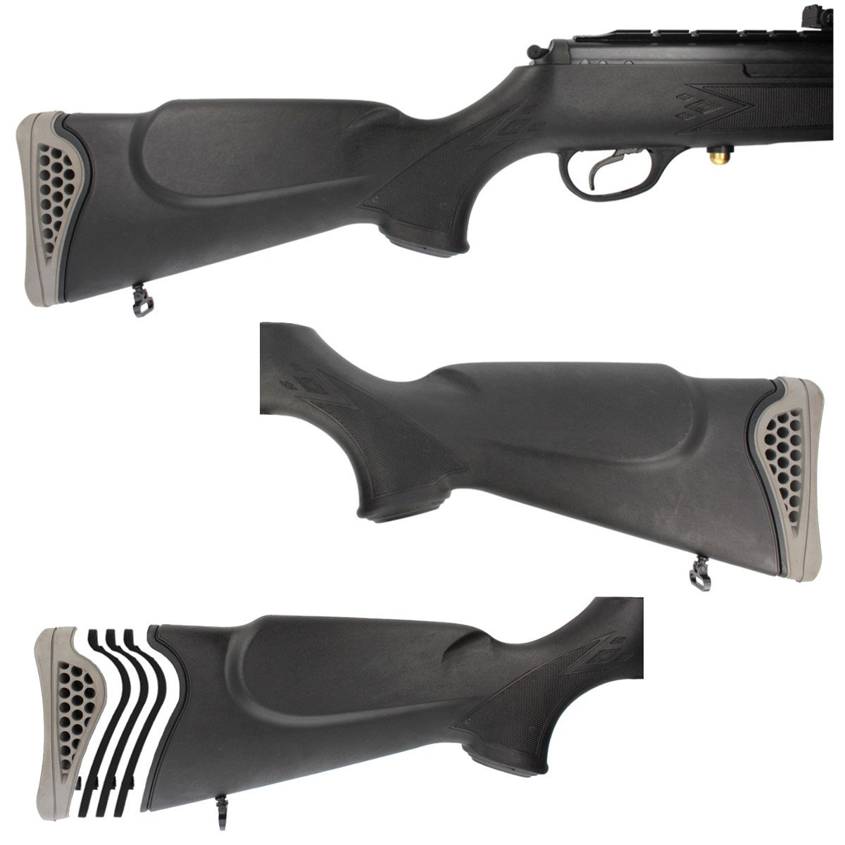 Settlement - ergonomic made of durable polymer in black color. Fluting on the pistol grip and in the center of the bed provides a secure grip and serves a decorative function. On the butt there is a contoured cheek pad of monte carlo type that makes it easier to fold up to shoot as well as aiming. The flask is adapted for both right and left-handed people. Ventilated rubber foot TrioPad® (three types of interchangeable feet) at the end of the flask allows you to adjust the length of the flask and absorb the recoil energy after a shot is fired.