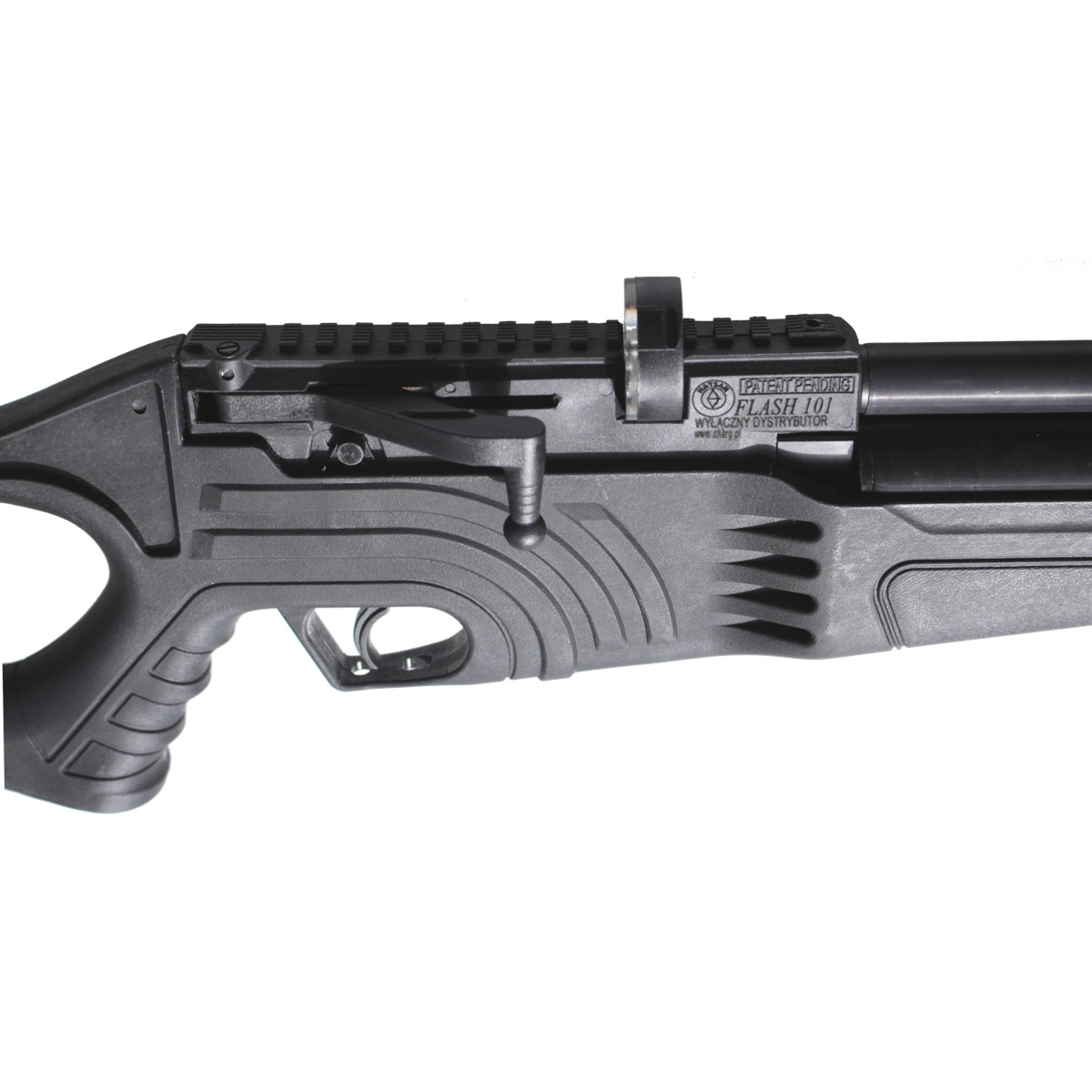 - FLASH 101 SET, a modern PCP air rifle at a great price! Includes PCP pump, Optima 4x32 scope with mount, two magazines, compensator, rail mount with bipod, carrying case, pack of shotgun shells. Precision 17.7" barrel ending with ½" UNF male threads